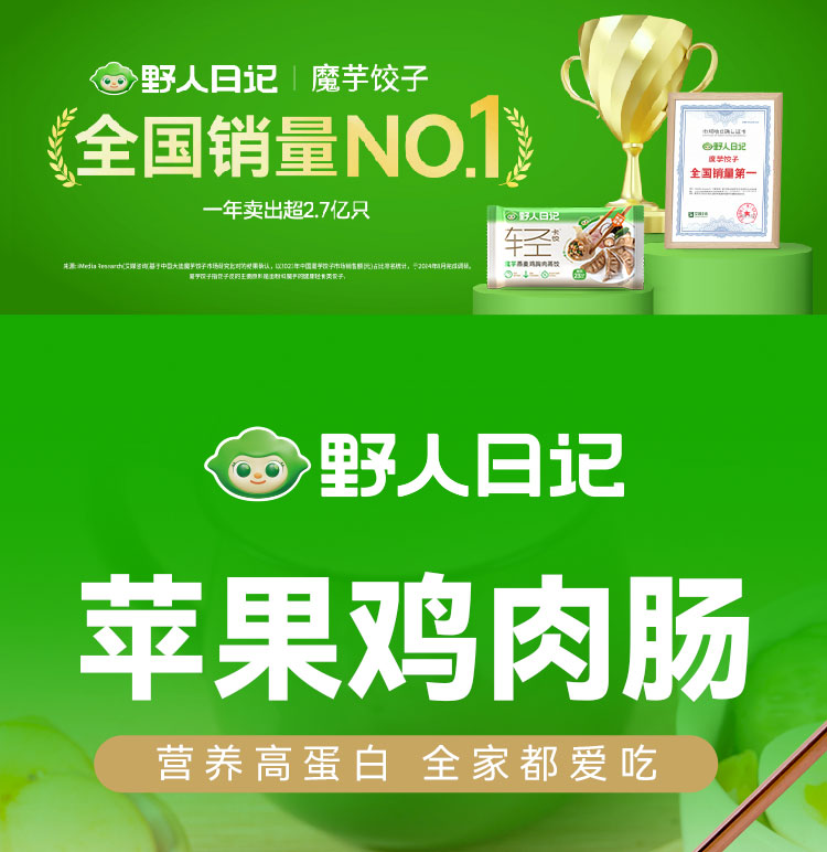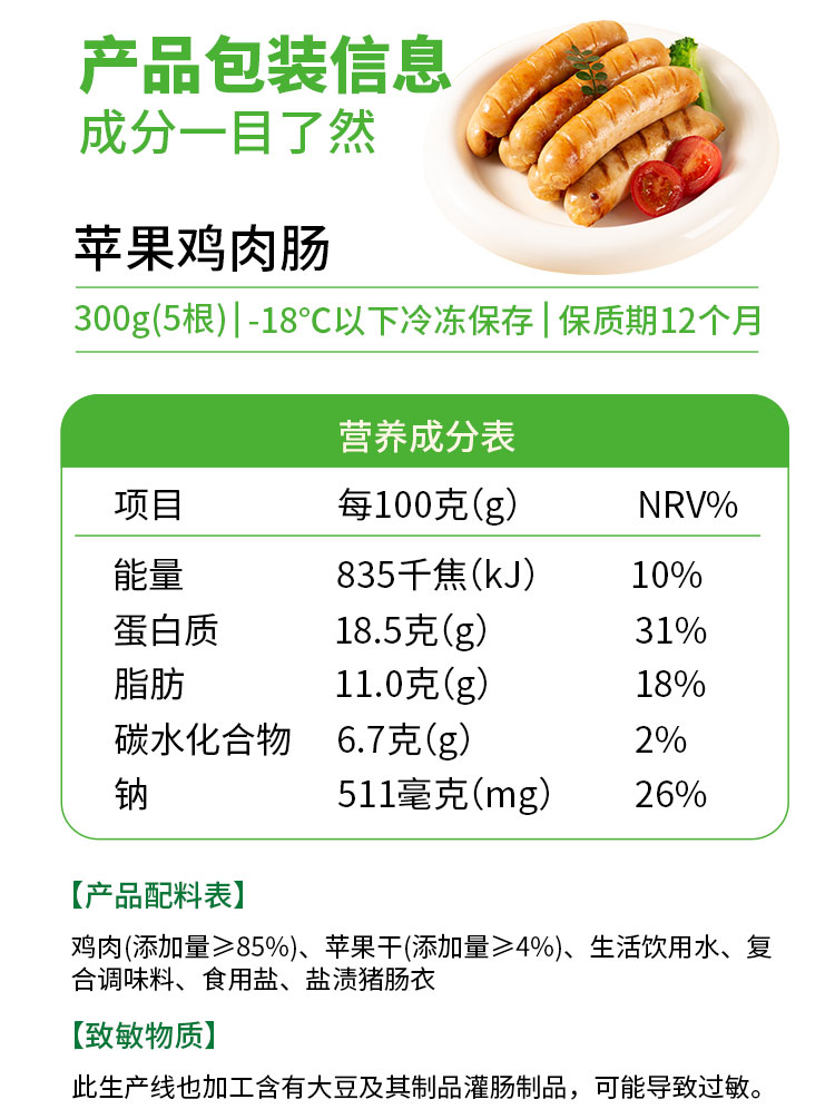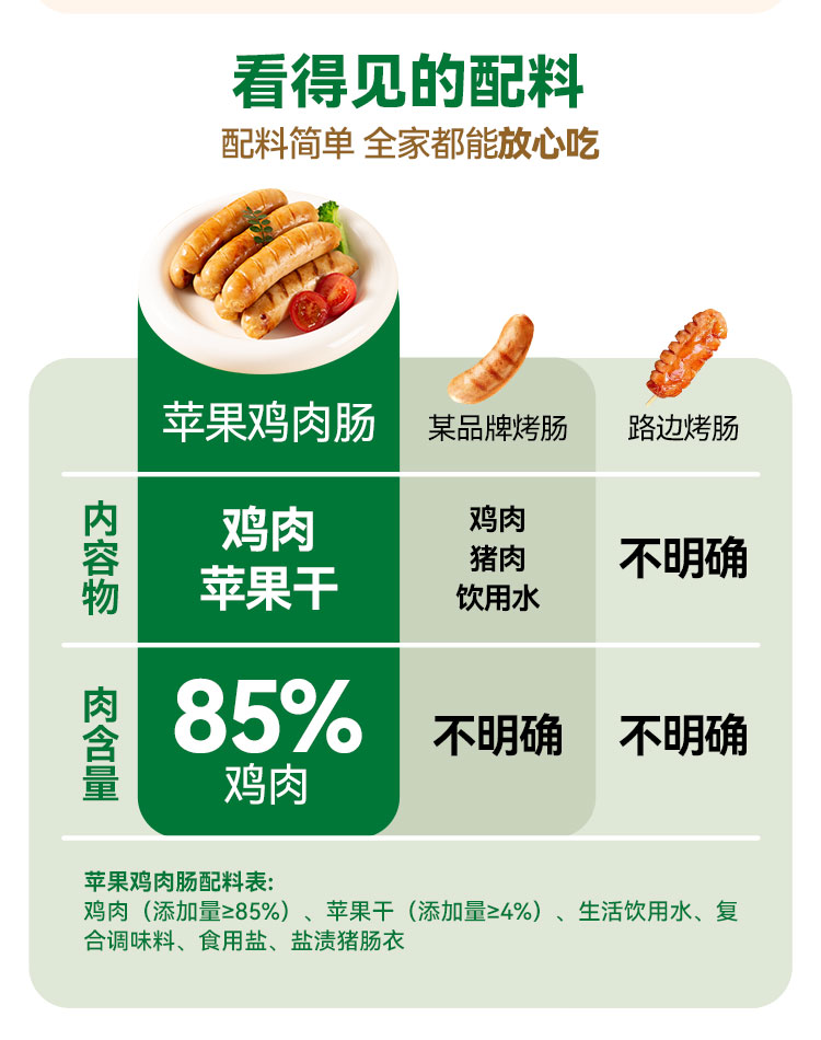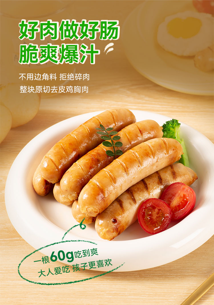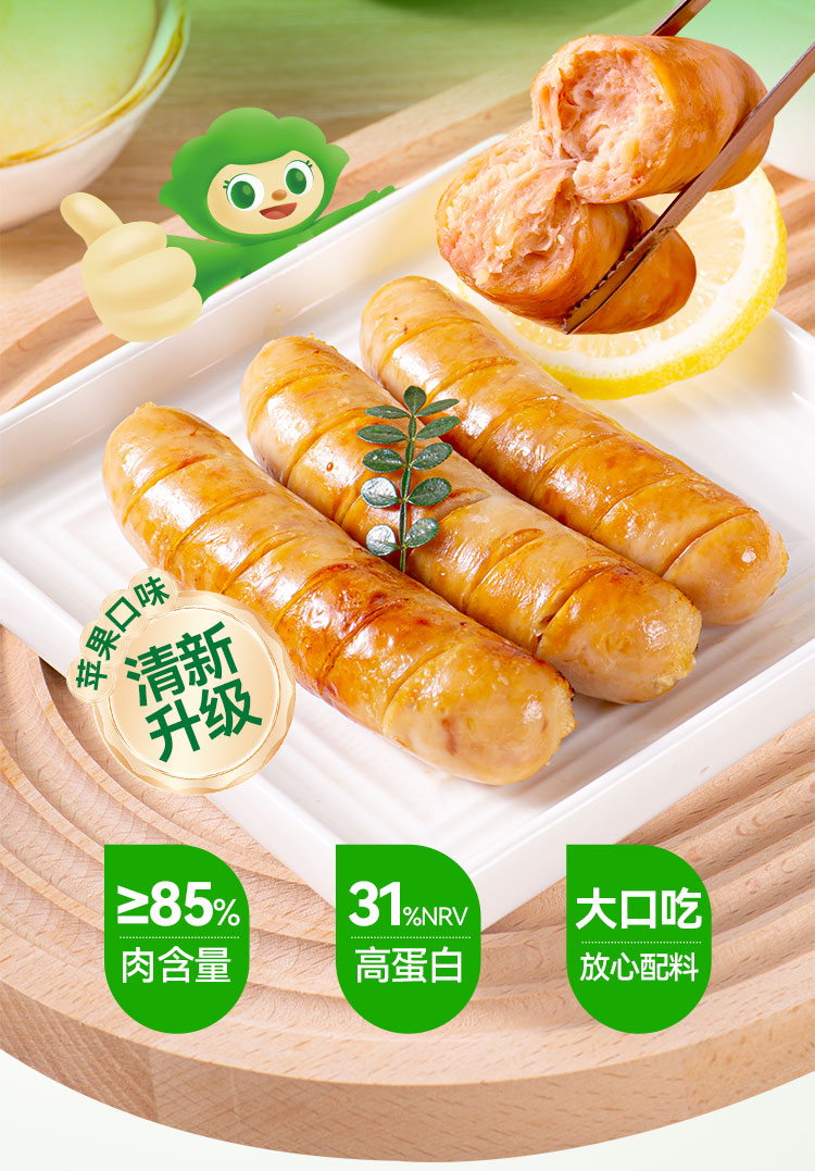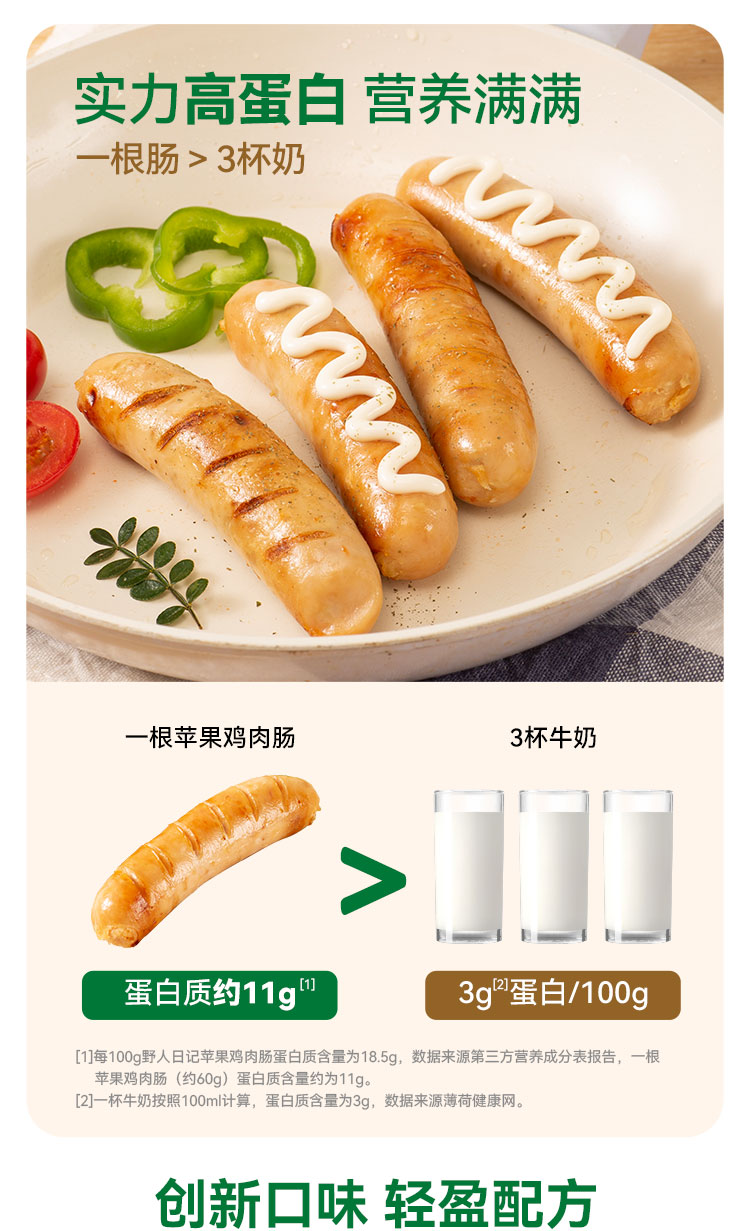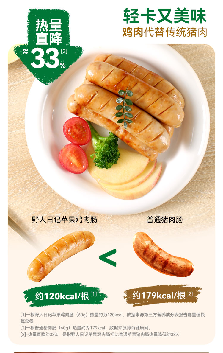 商品名称:野人曰记苹果鸡肉肠!低卡低热量~