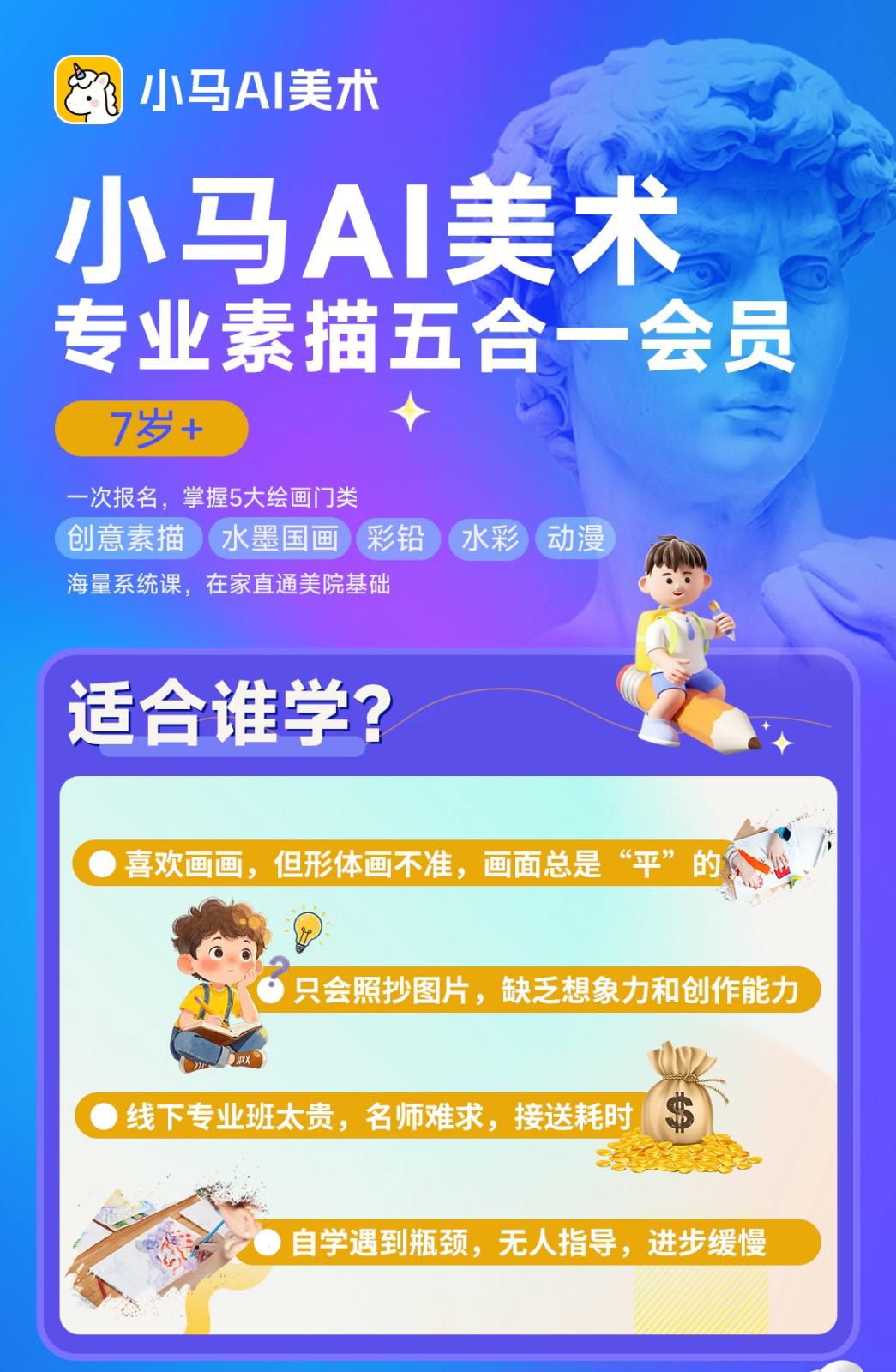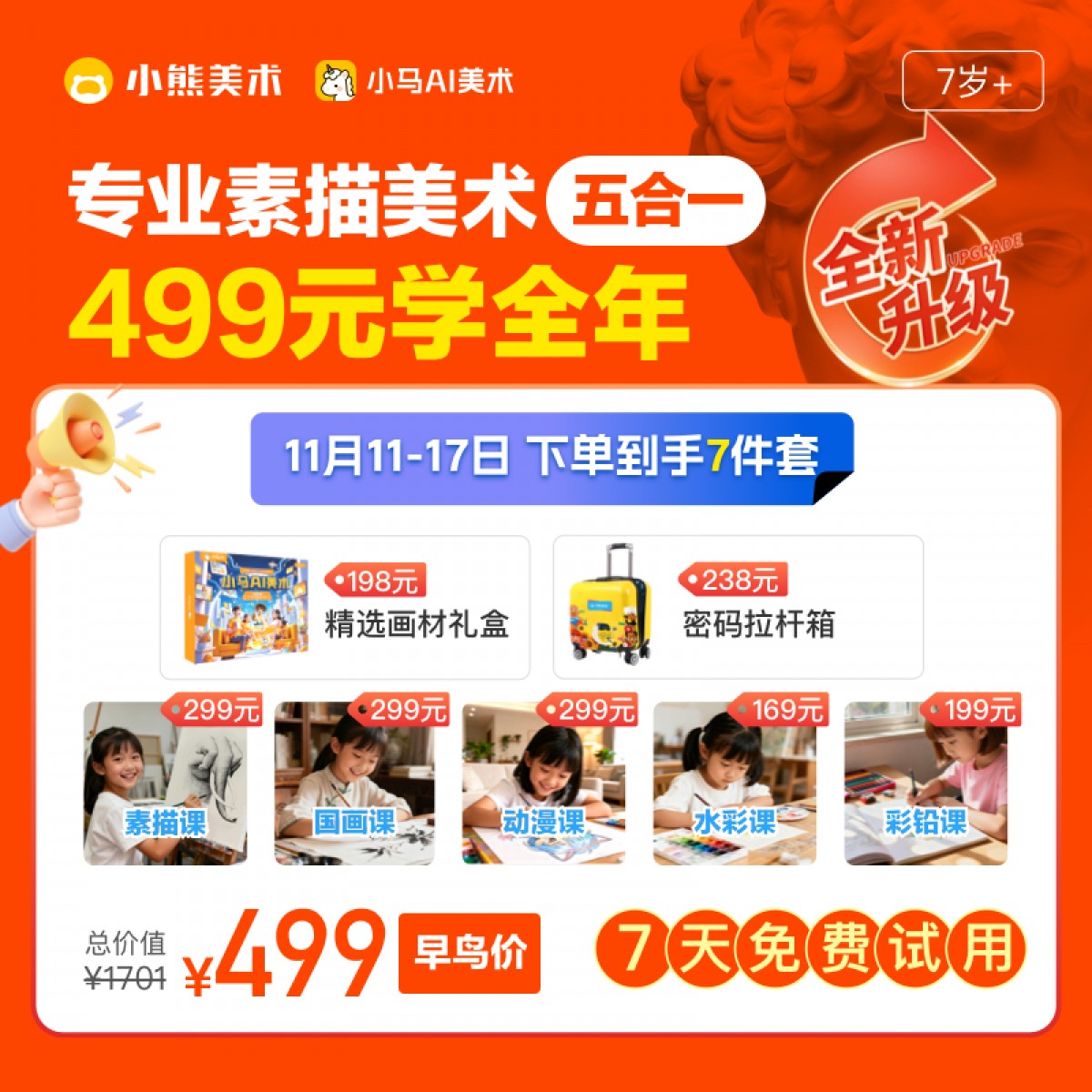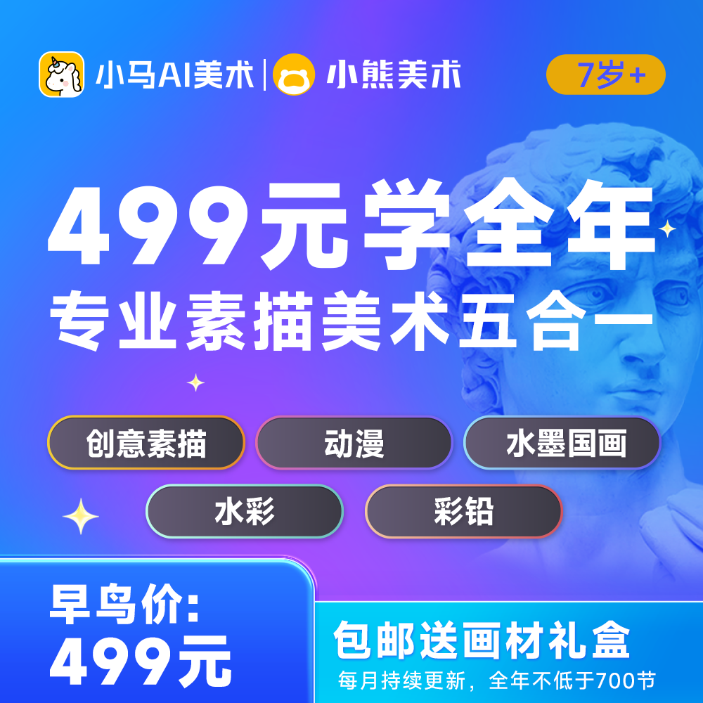 到手7件套【专业素描美术五合一】499元学全年!7岁+美育启蒙必入!