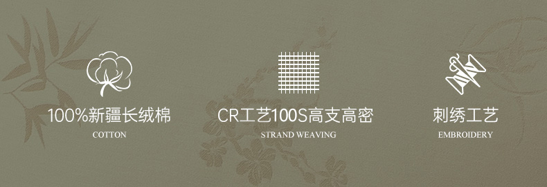 1、采用双股100支新疆长绒棉面料,纱线紧密排列,质感厚实,耐磨抗皱。压框大绣花工艺,带来与众不同的视觉效果。