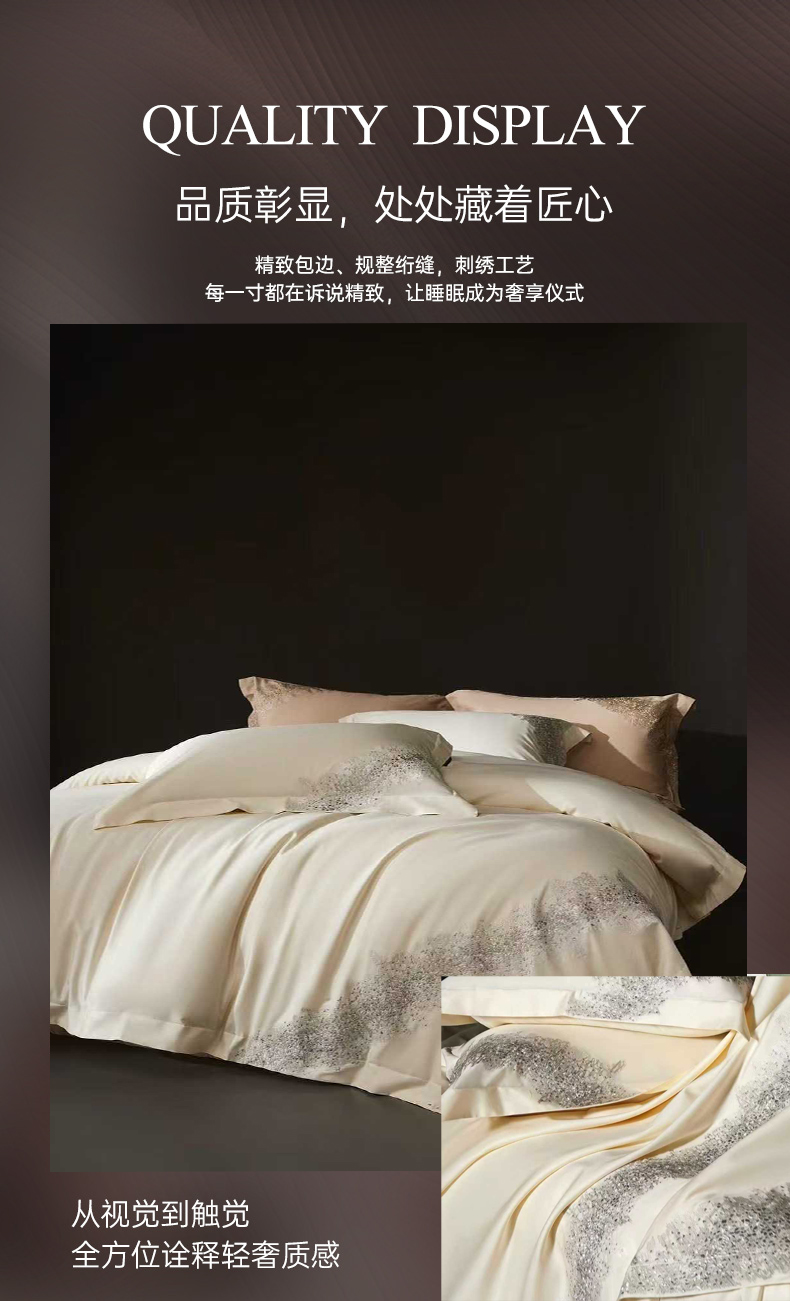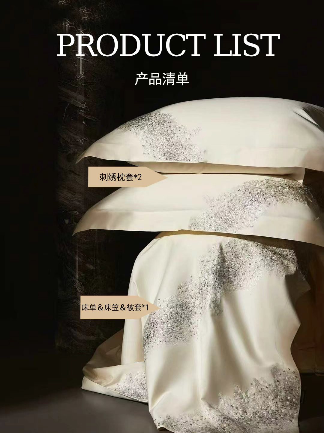 2、 绣花四件套被称为“用指尖欣赏的艺术”,有立体浮雕感,触觉视觉双享受。