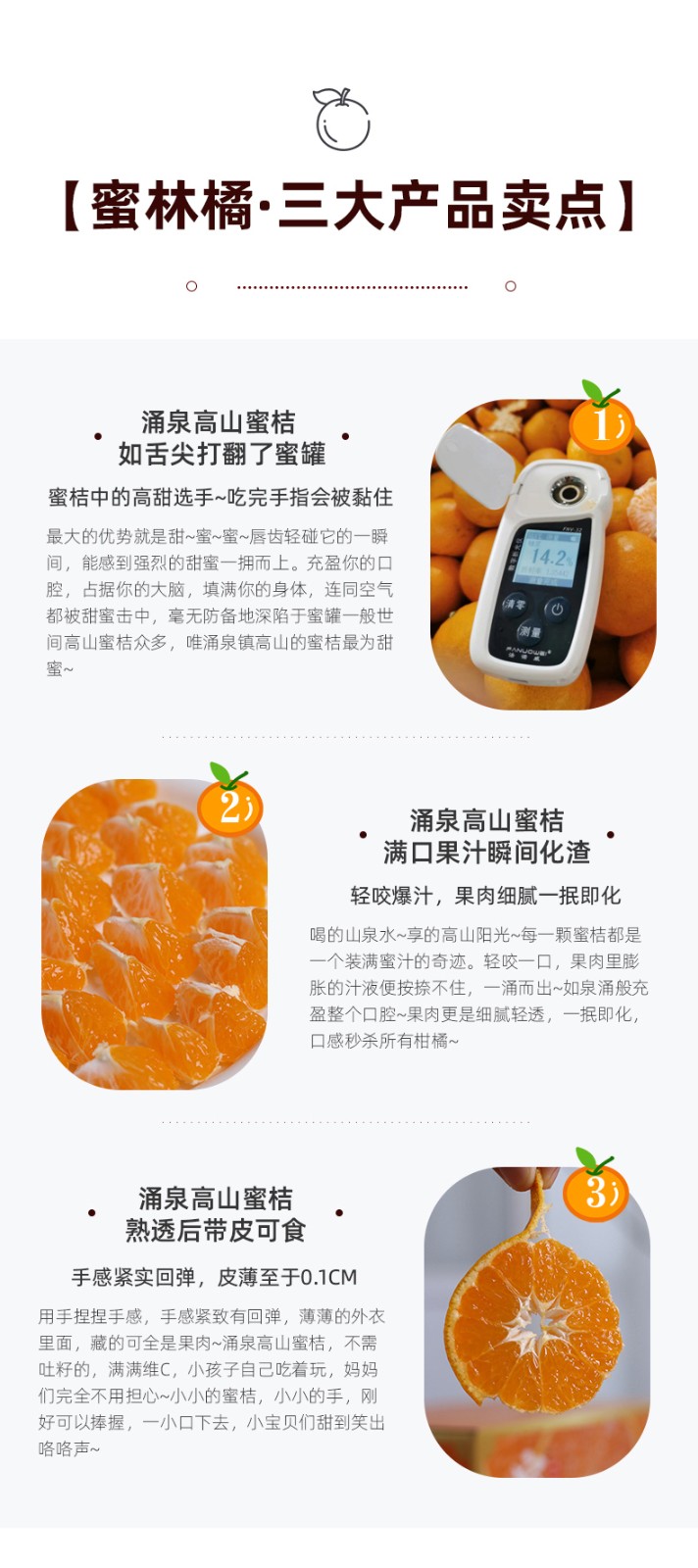 商品名称:【特价】涌泉蜜桔!9甜一酸整箱!正宗浙江临海涌泉蜜桔,个个汁水饱满,味道清甜,浓郁的应季蜜桔香,自家吃还是送人都贴心!
