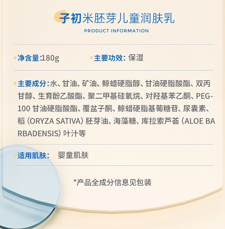商品名称:【原价39.9元, 现活动价19.9】子初 米胚芽儿童润肤乳 180g/支*2