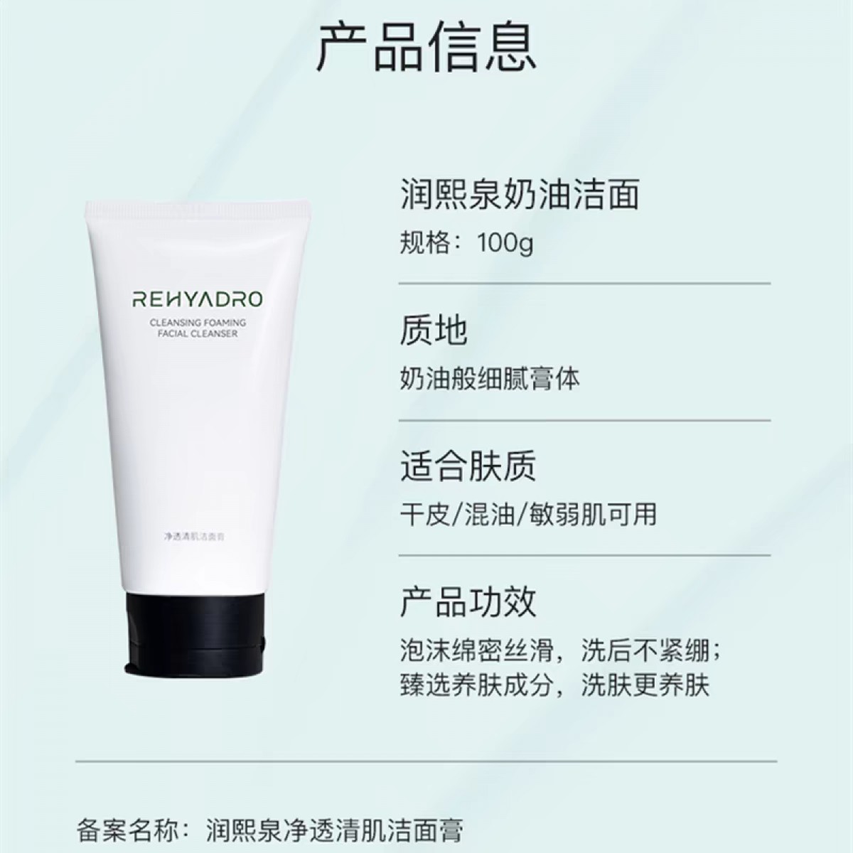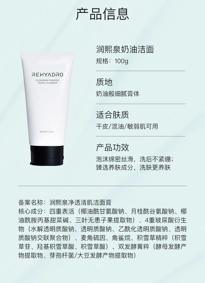 商品名称:清仓!买2得4!润熙泉净透清肌洁面膏 [100g/支]加赠2个30g中样!