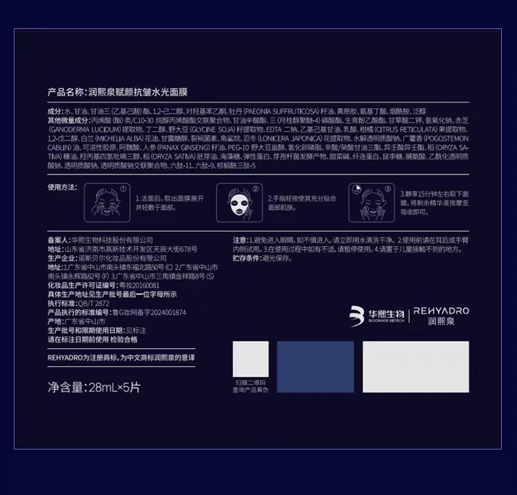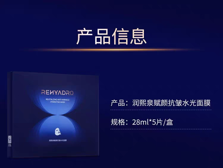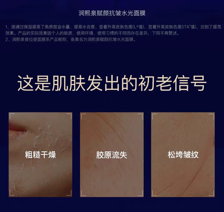 商品名称:停产清仓!3盒装!加赠5片!润熙泉赋颜k皱水光面膜5片/盒(蓝色款)