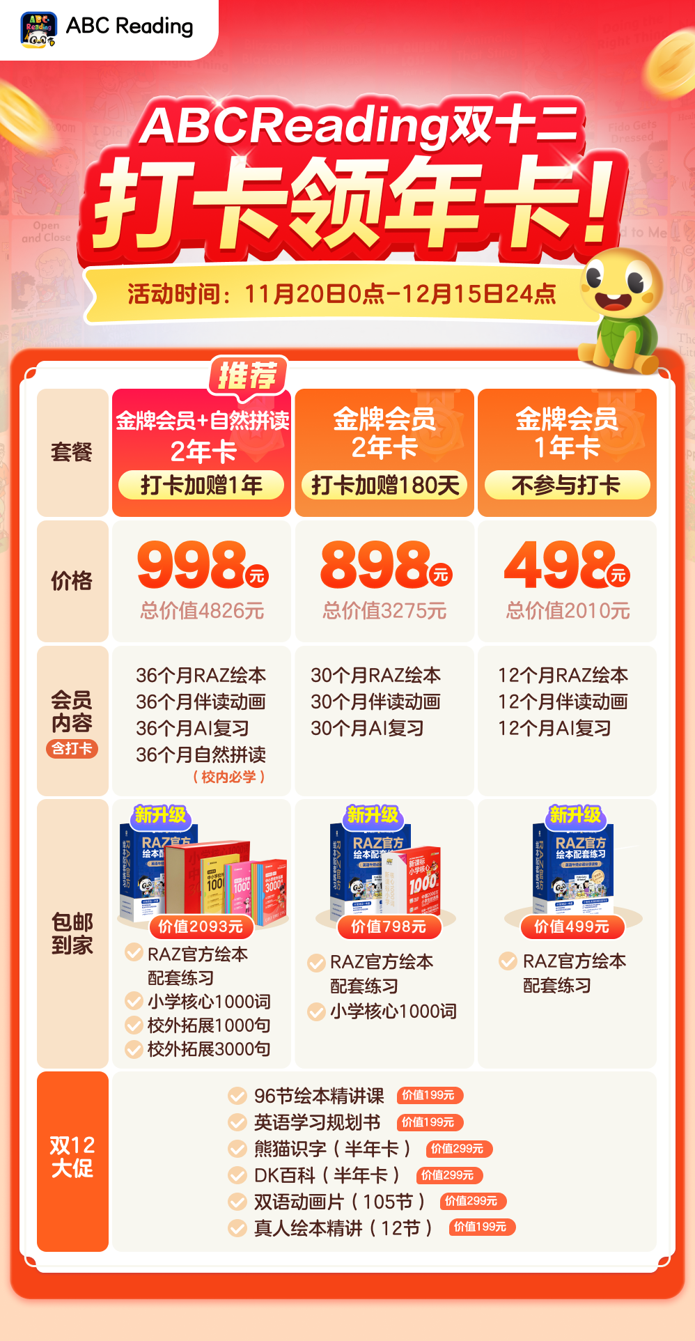 💡新升级的会员体系,以RAZ绘本+伴读动画+AI复习为基本会员内容,打造RAZ学习深度闭环