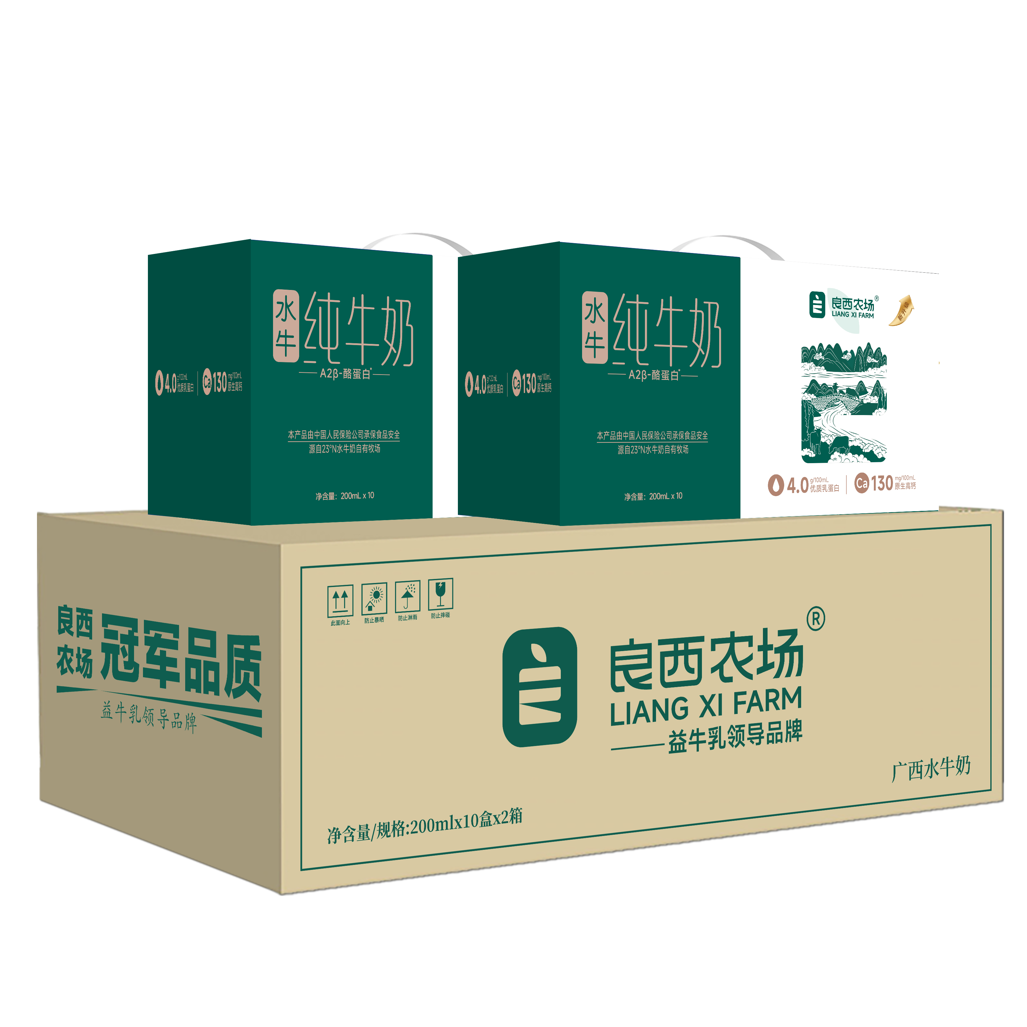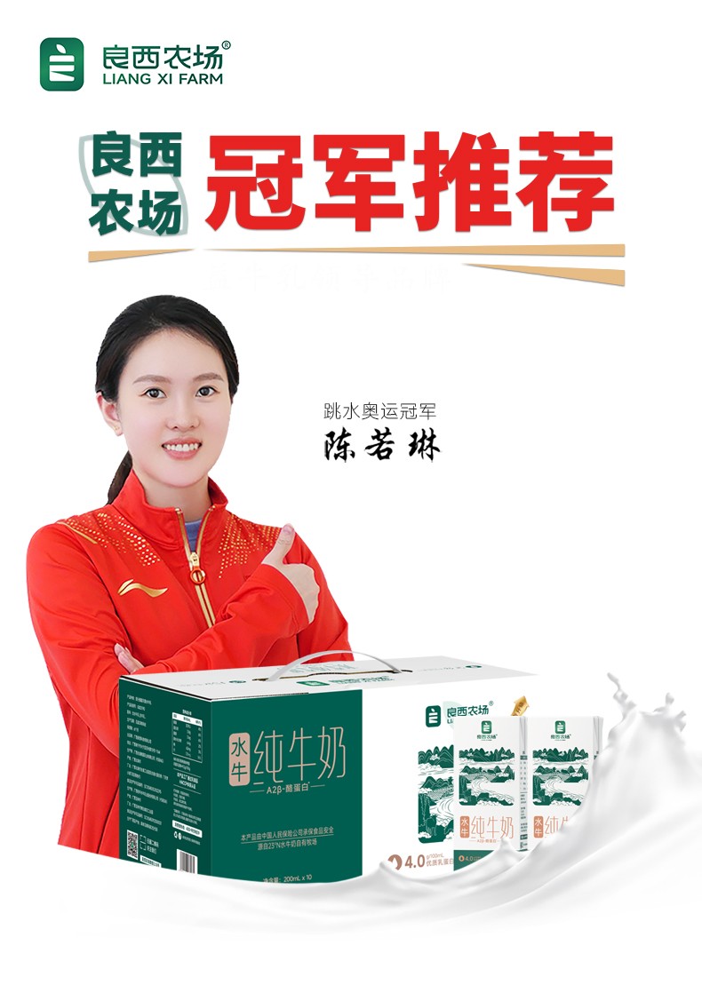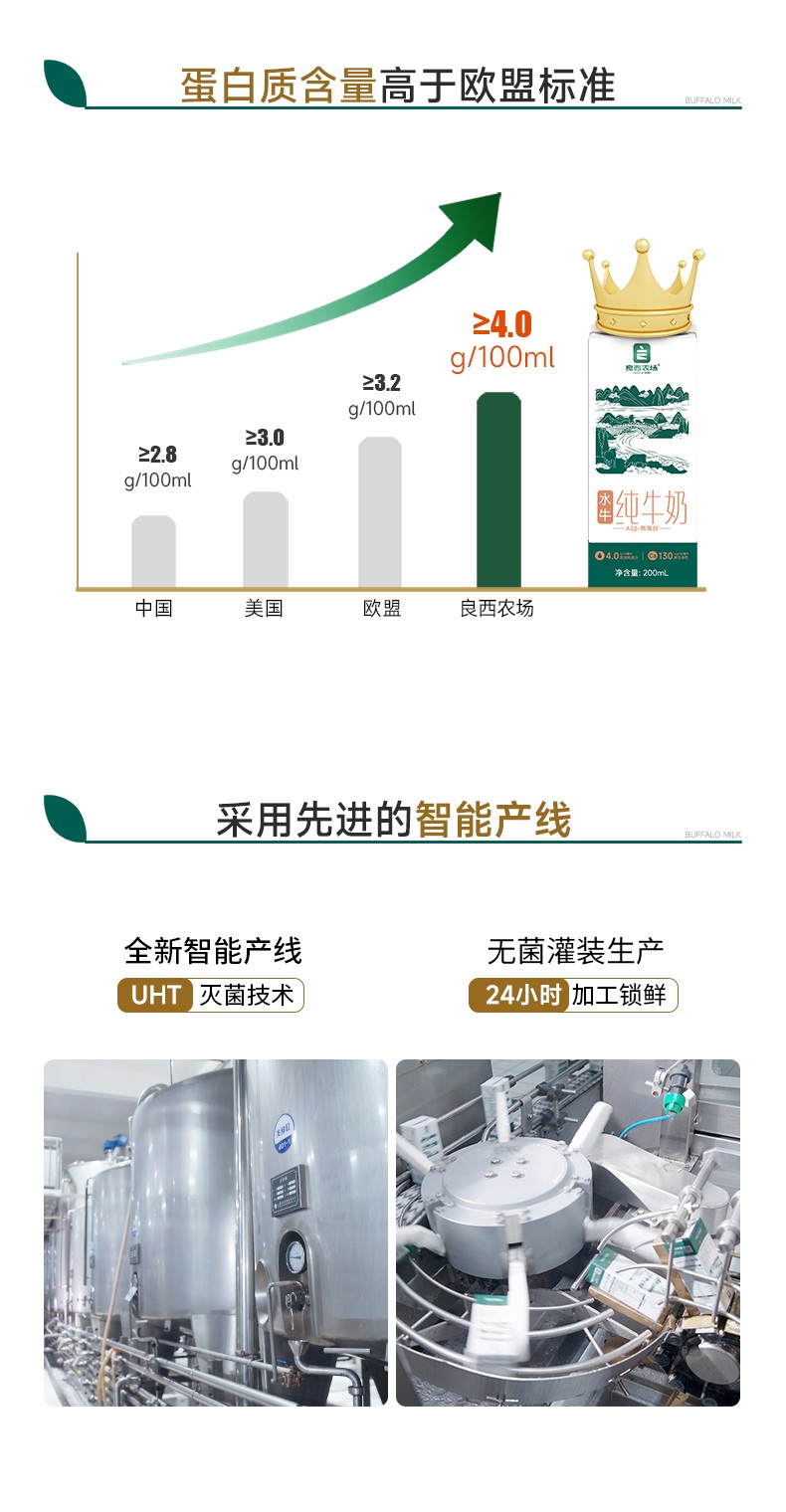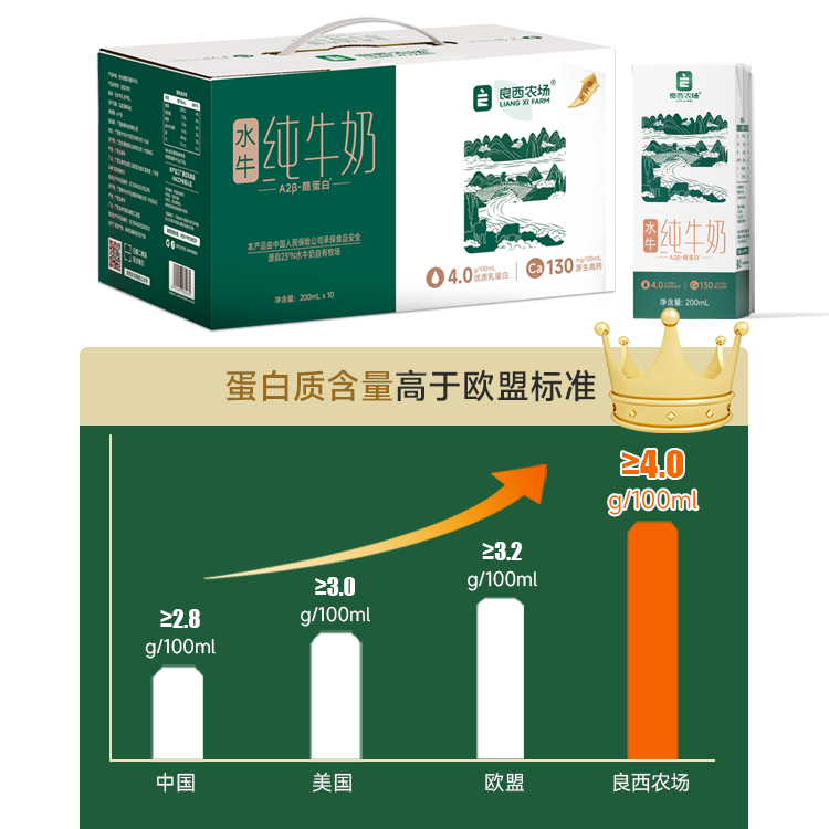 商品名称:良西农场A2β-酪蛋白水牛纯牛奶200ML*10盒