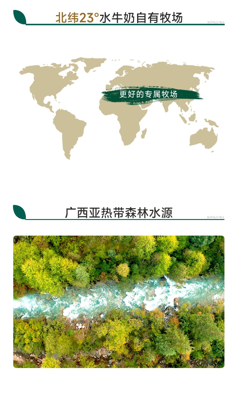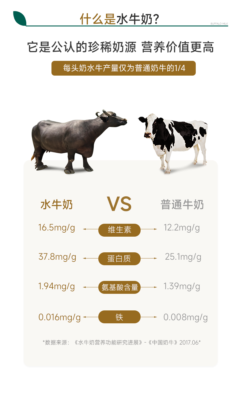 源自北纬23°水牛奶自有牧场 巴基斯坦进口尼里拉菲水牛,稀有奶源 每100mg含130mg原生高钙,4.0g优质乳蛋白