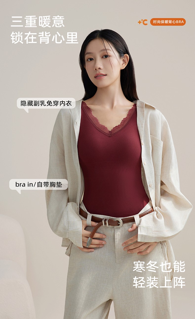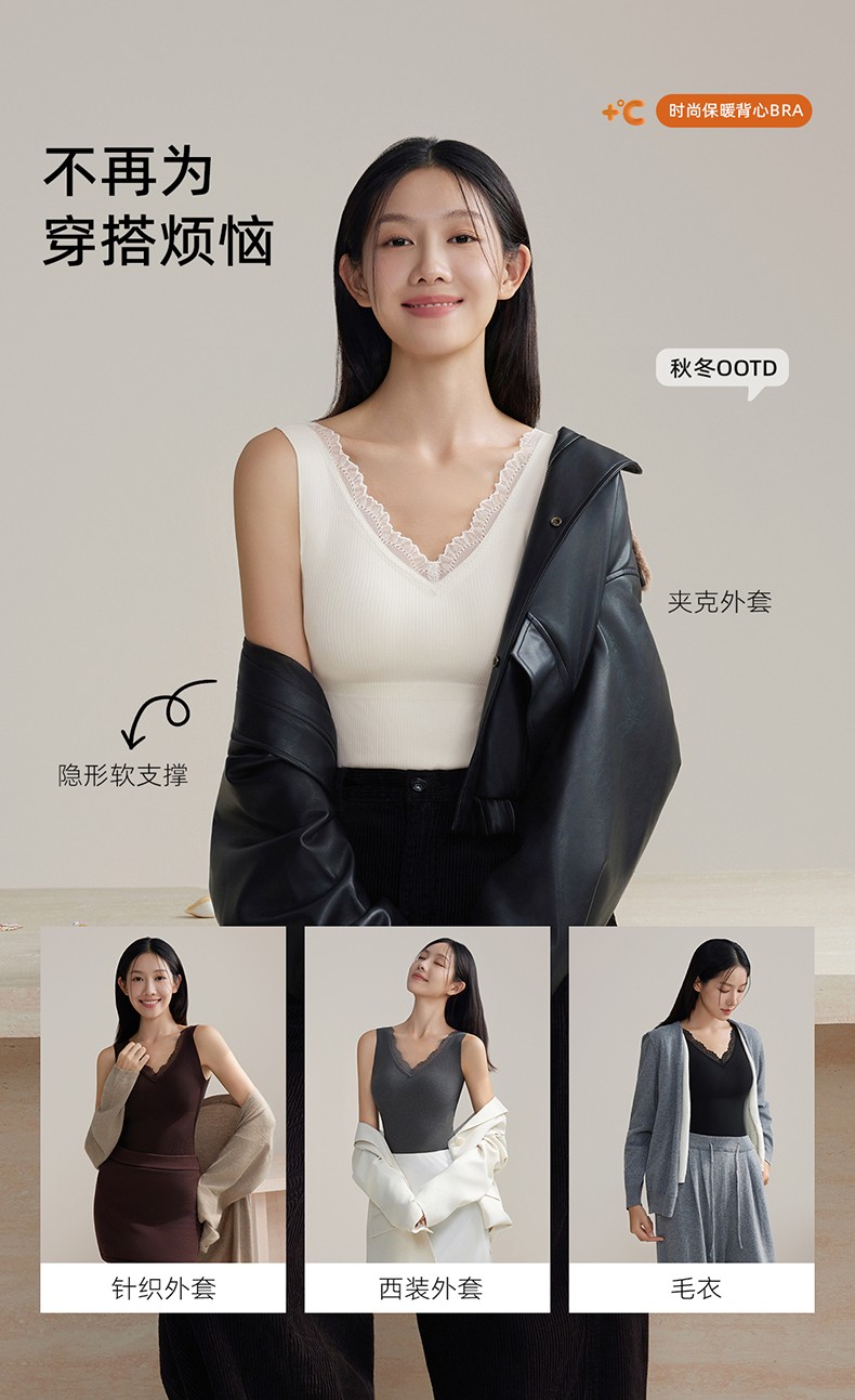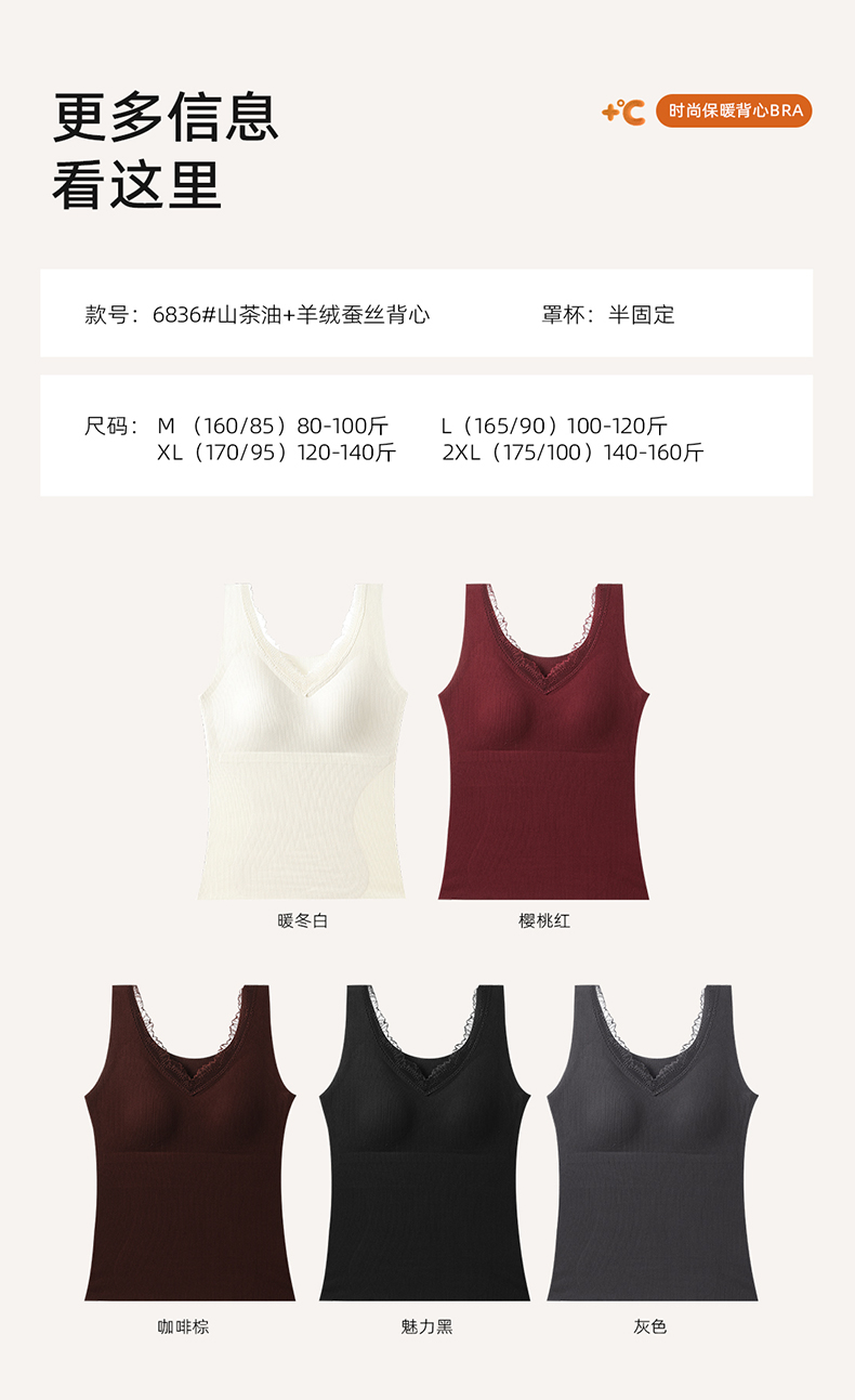 黑科技锁温像把小太阳缝进衣服里~内含有山茶花油+羊绒蚕丝!自带胸垫,解放胸部束缚,告别冷冰冰的内衣!