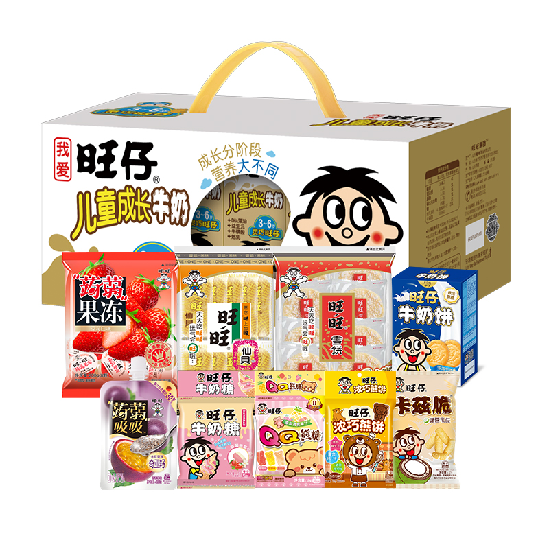 商品名称:旺旺零食全家福儿童送孩子组合!儿童成长牛奶!再搭配旺旺爆火经典零食!旺仔牛奶!旺旺雪饼!旺旺米饼!旺旺果冻吸!童年的味道我知道!孩子也知道!