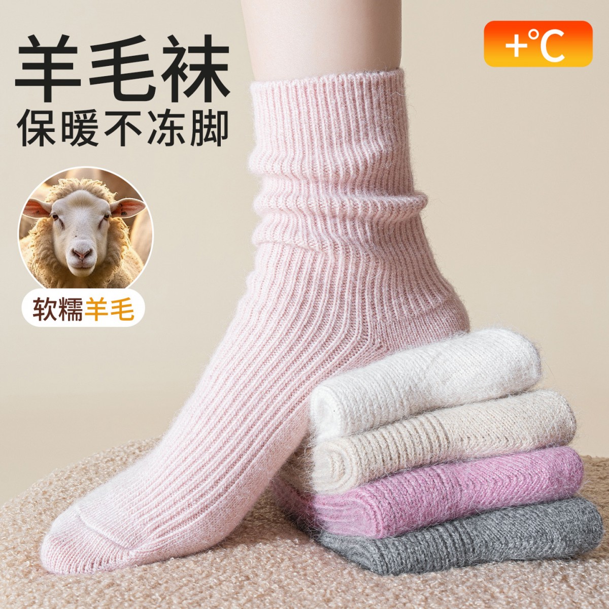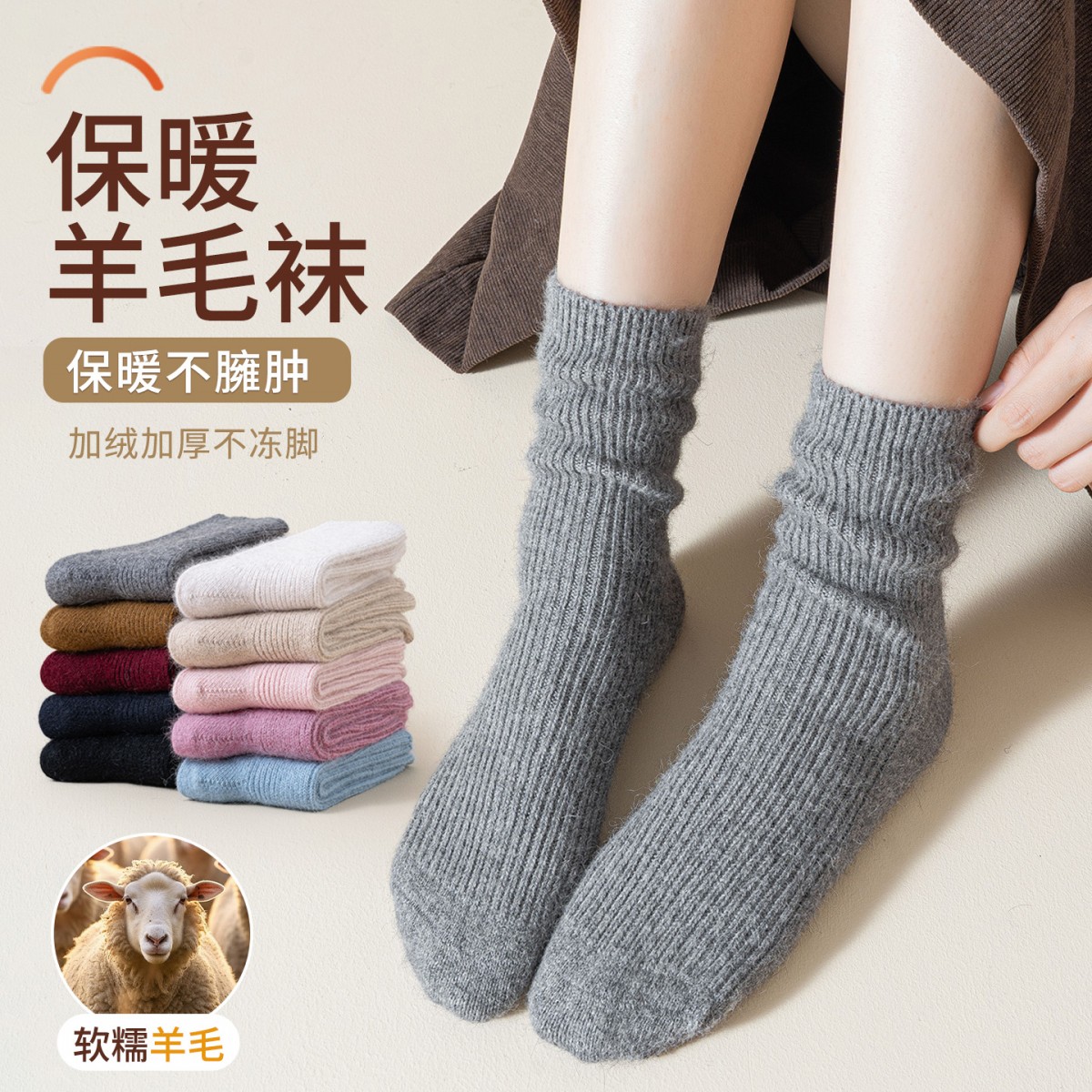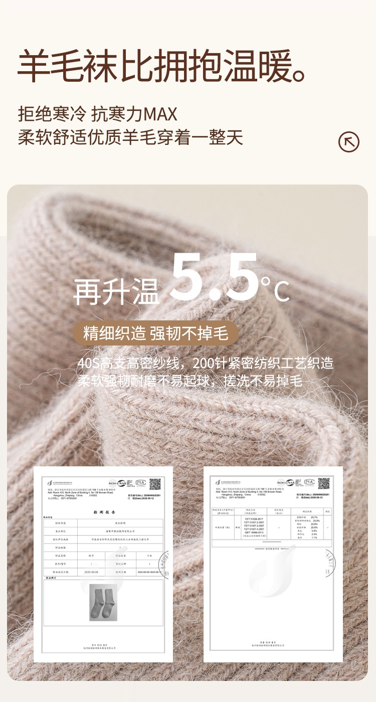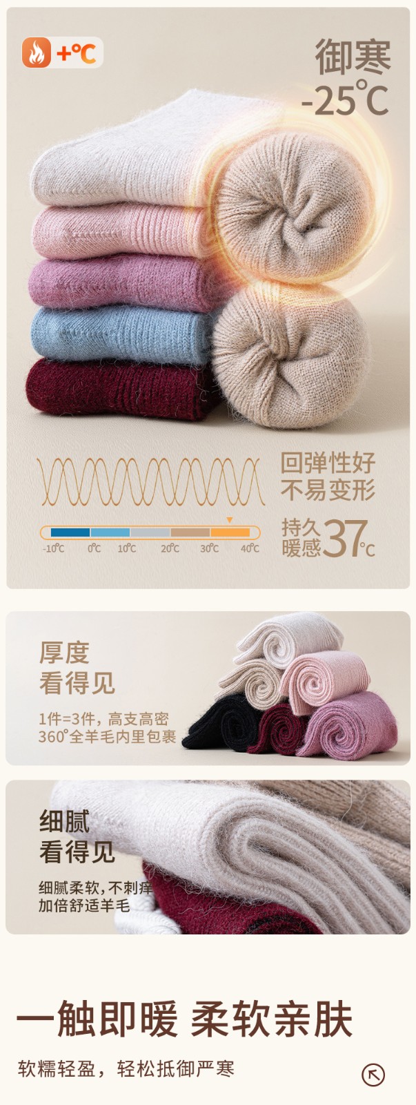 【3双装】袜子姑姑双针保暖羊毛袜!超亲肤,手感柔软舒适~