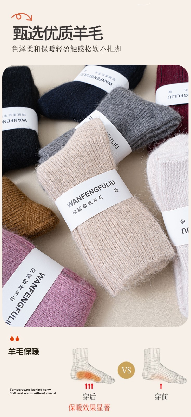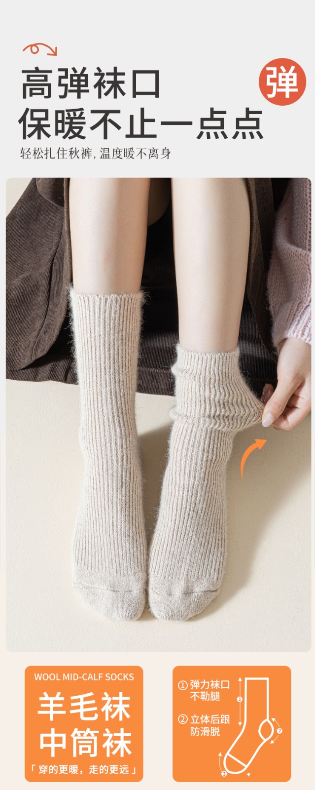 商品名称:【3双装】袜子姑姑双针保暖羊毛袜!超亲肤,手感柔软舒适~