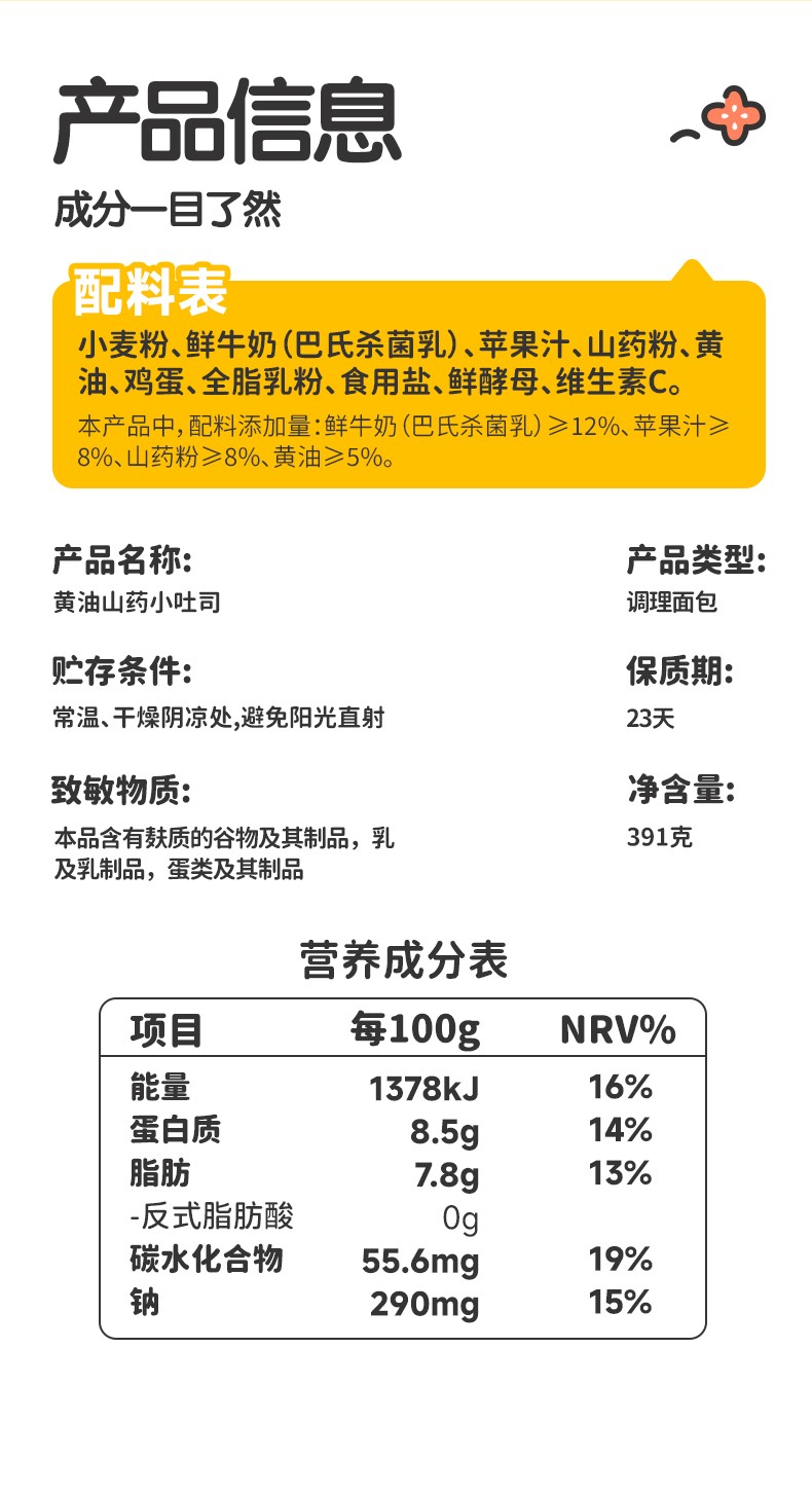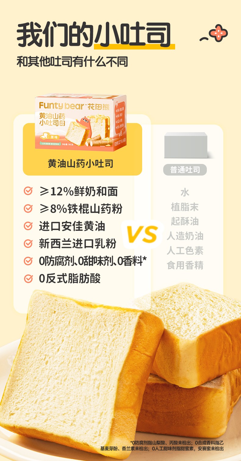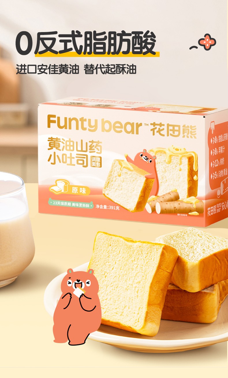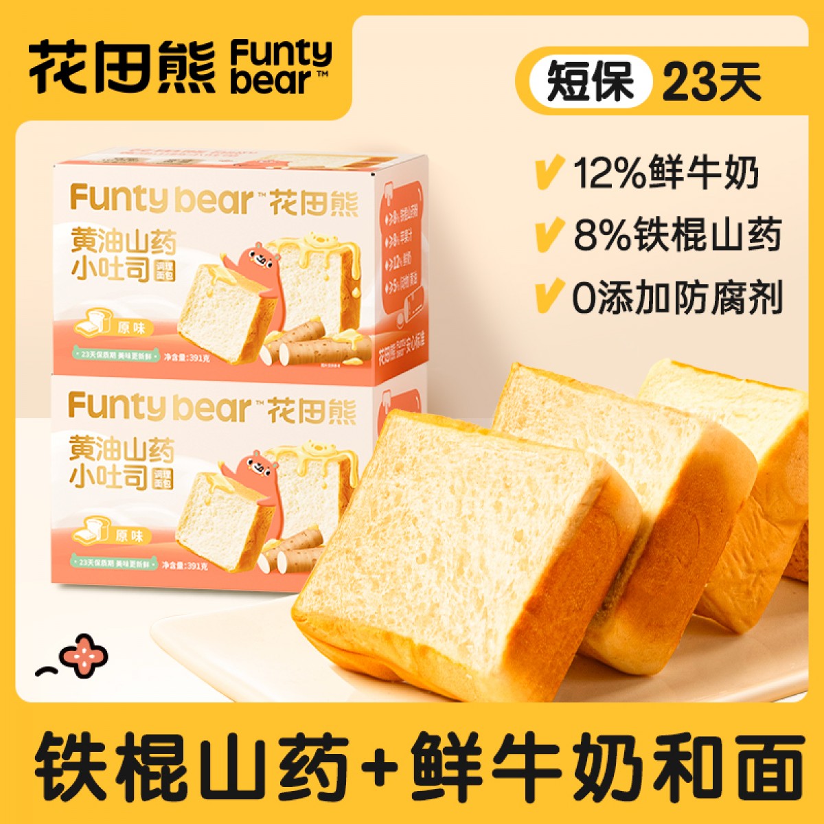 商品名称:【周三闪购】花田熊黄油山药小吐司!你一个小吐司做的也太好吃了吧!奶香味超足!面宝口感紧实又软,不够吃根本不够吃,一箱17包~小吐司,大美味~