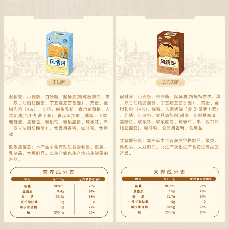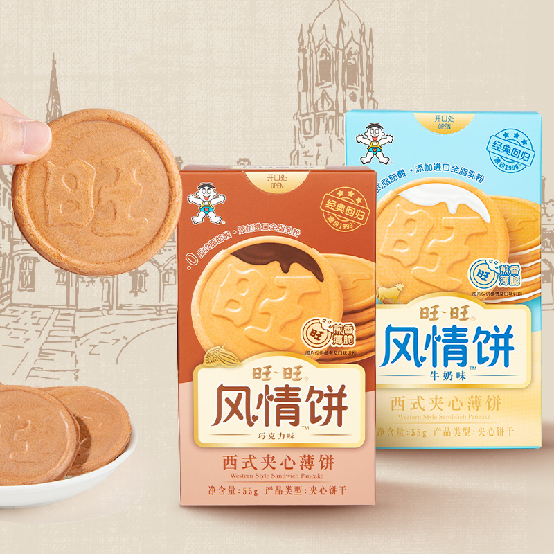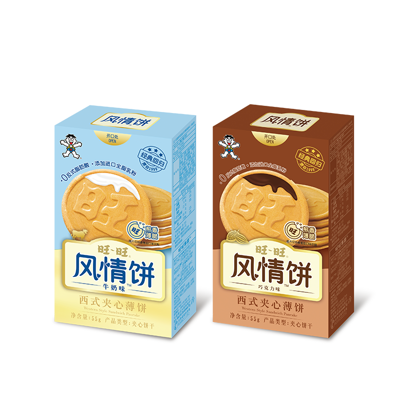 商品名称:【99元任选20件】旺旺风情饼_55g牛奶 巧克力