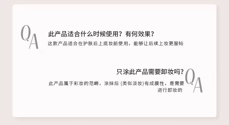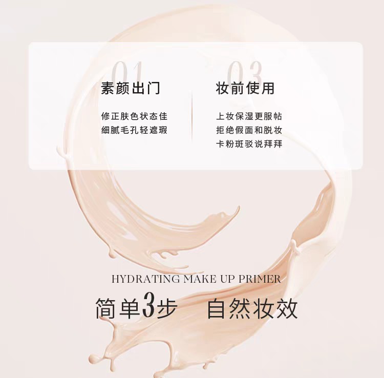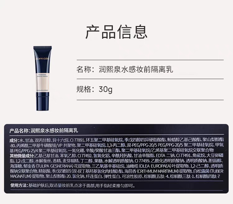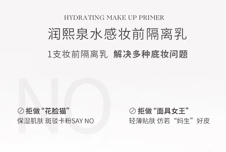商品名称:【即将售罄!】2支装!华熙生物润熙泉妆前乳!特价清仓!素颜神器,直接用就是伪素颜神器,无需粉底加持!妆前乳+素颜霜+隔离霜三合一。