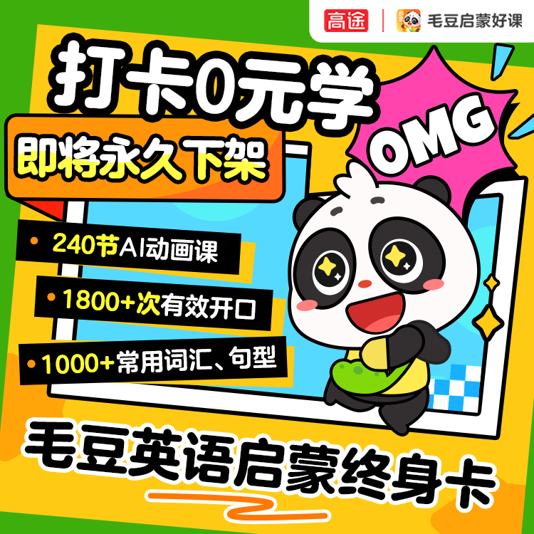 【打卡0元学】毛豆英语启蒙终身卡,240节听说入门/自然拼读AI趣味动画课程,趣味课程+智能伴学,五步教学法打造闭环教学,沉浸式母语学习环境和教学模式,让孩子见词能读、听音能写!