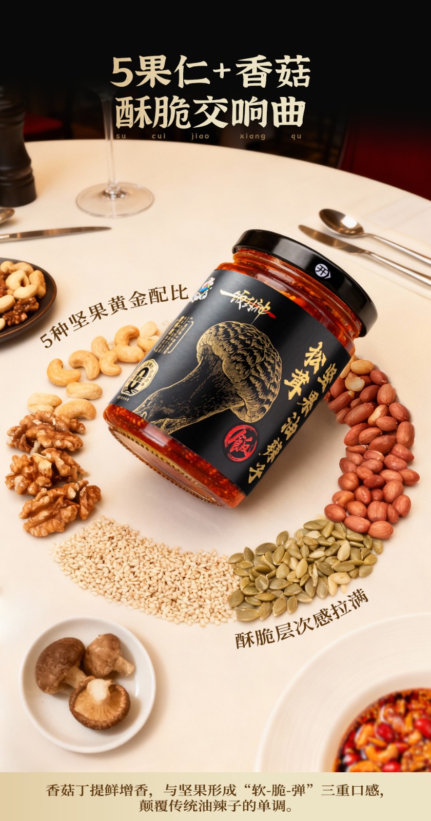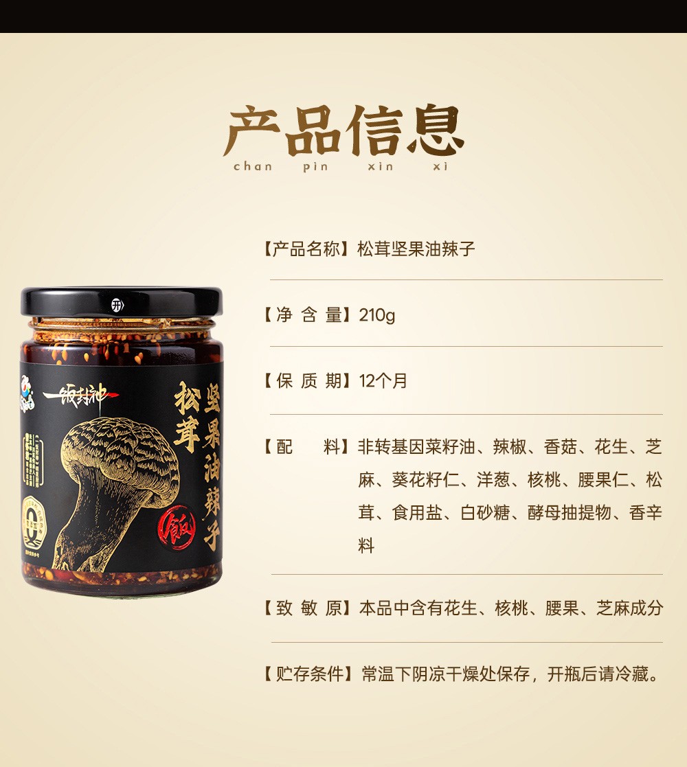 商品名称:【饭扫光新品】山姆升级款の米其林级美味革命|松茸坚果油辣子!甄选甘孜海拔3000米+的「万菌之王」松茸鲜香馥郁,每一口都是雪山馈赠的奢华!