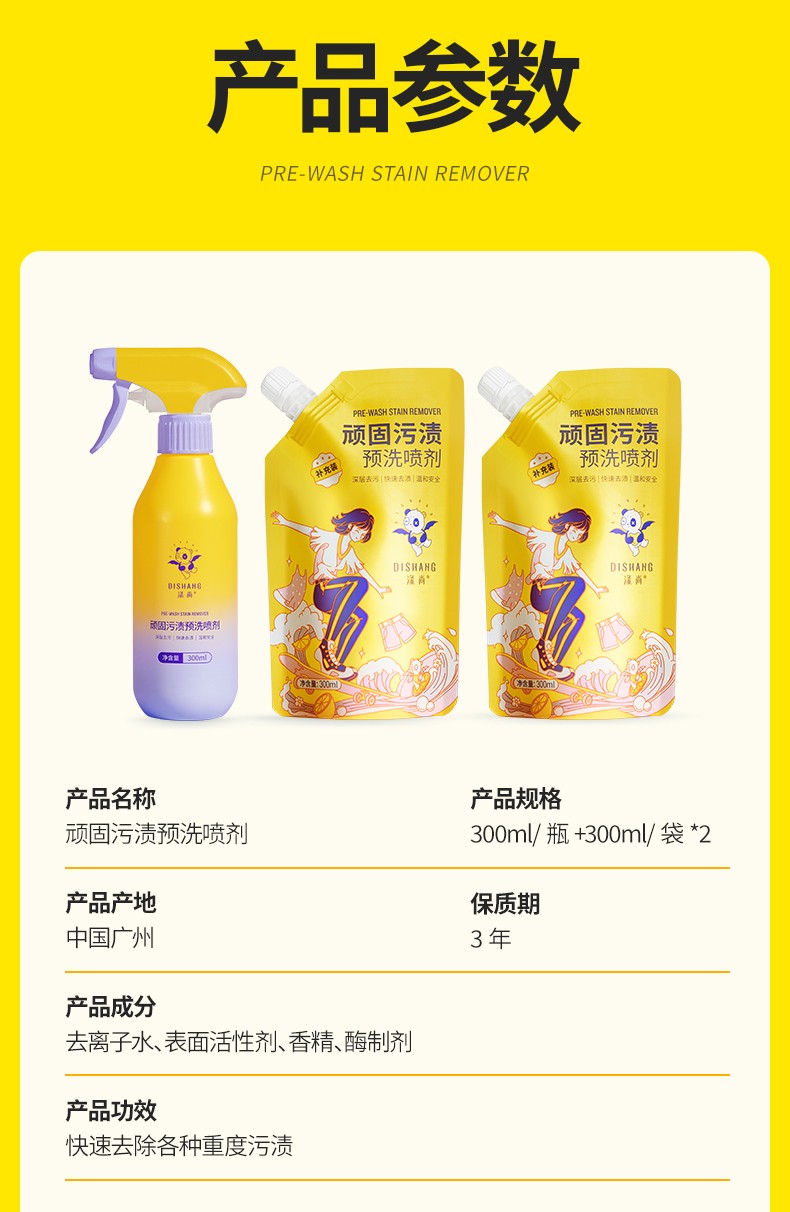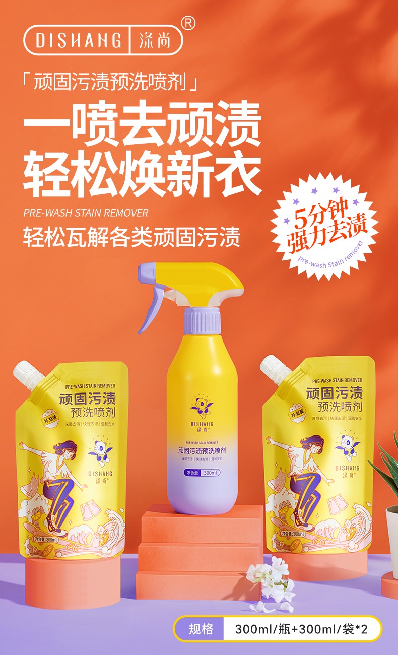 商品名称:【上新】涤尚顽固污渍预洗喷剂组合(1瓶+2袋替换装)!还有补充装组合!