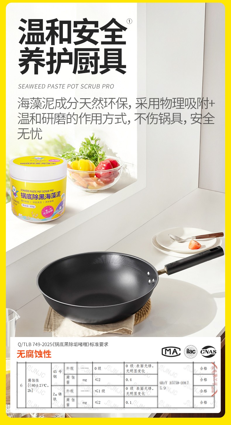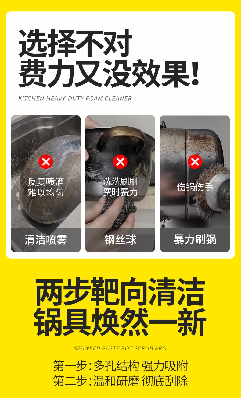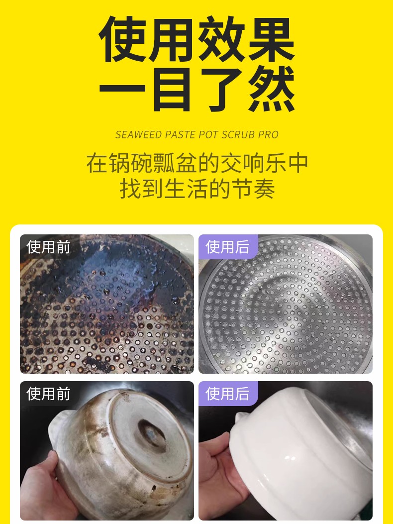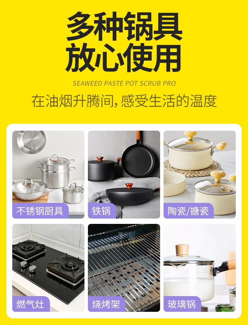 商品名称:涤尚锅底除黑海藻泥2瓶(赠刷子+手套)专门针对锅底黑垢的清理,海藻泥多孔结构,强力吸附锅底黑垢中的油脂和积碳,轻松瓦解顽固黑垢。