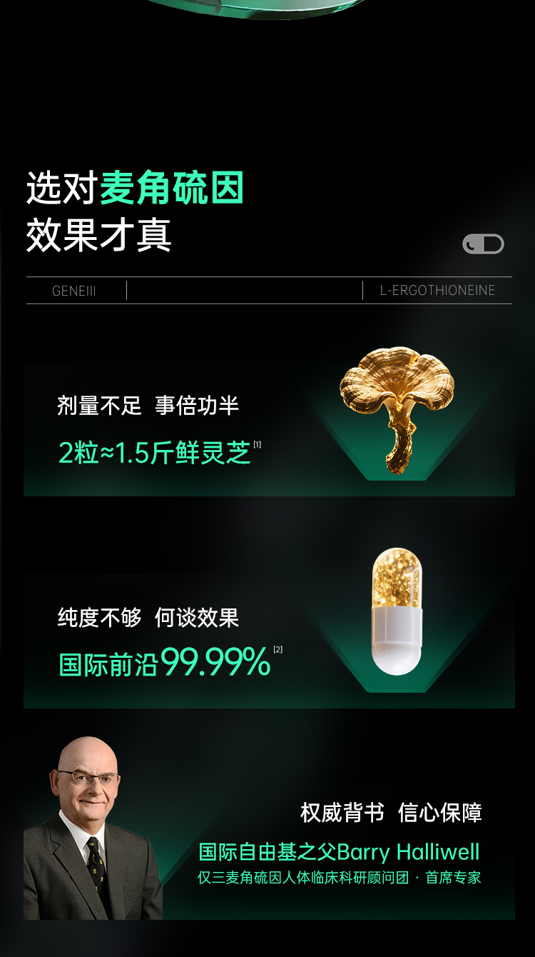 细胞线粒体级别抗老抗衰成分!2粒胶囊≈1.5斤鲜灵芝,人体临床验证备案,多国背书、海外专家认证、国内外安全认证