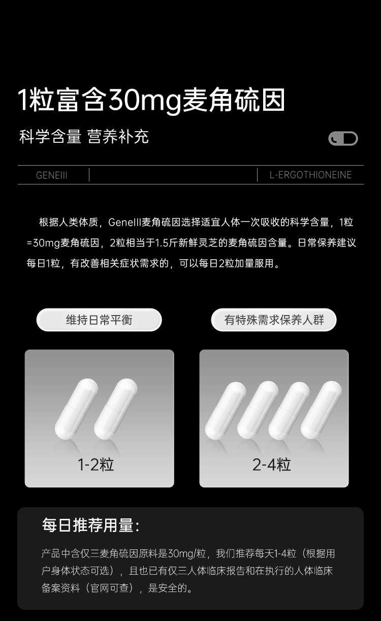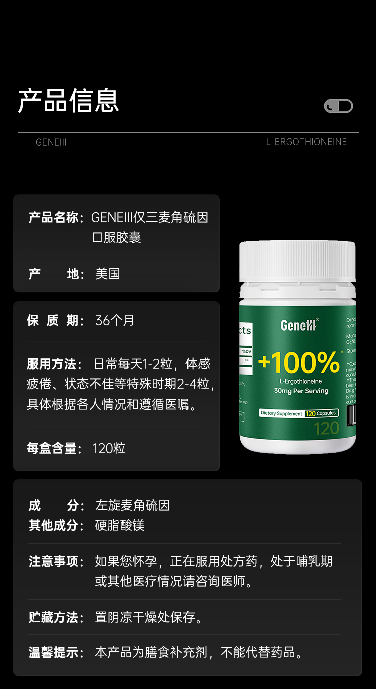 商品名称:【GENEIII仅三生物】30mg麦角硫因胶囊120粒