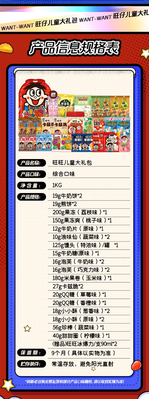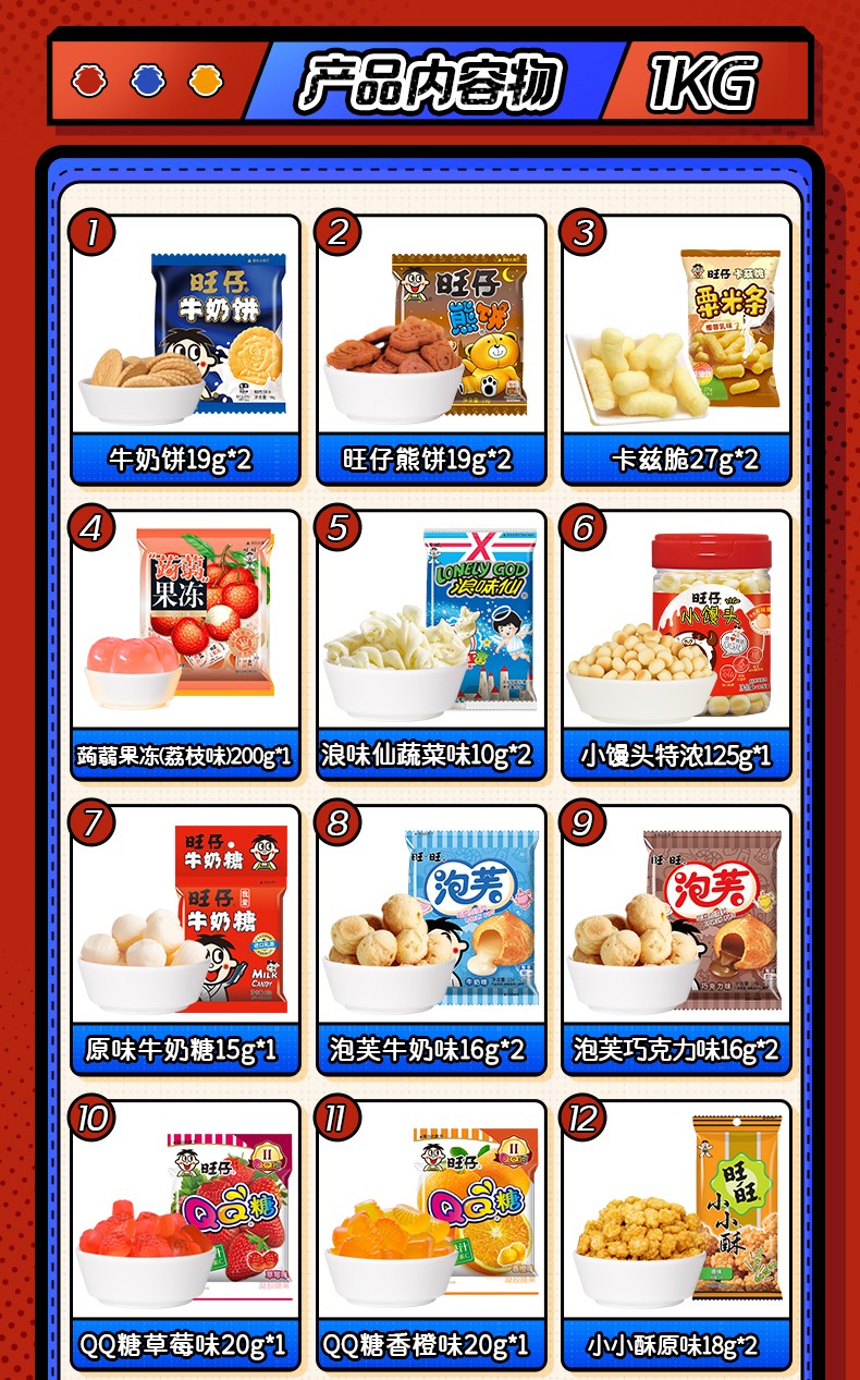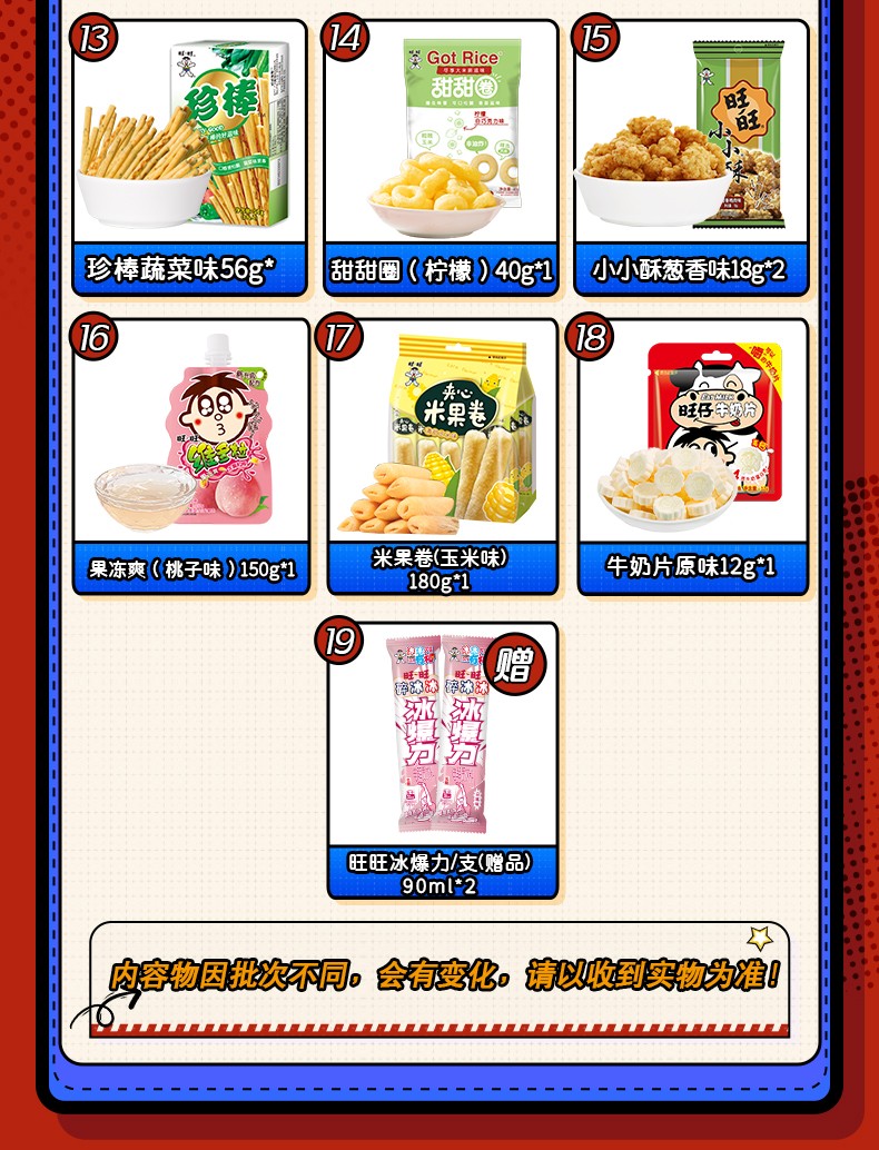 16g泡芙(巧克力味)*2180g米果卷(玉米味)*1