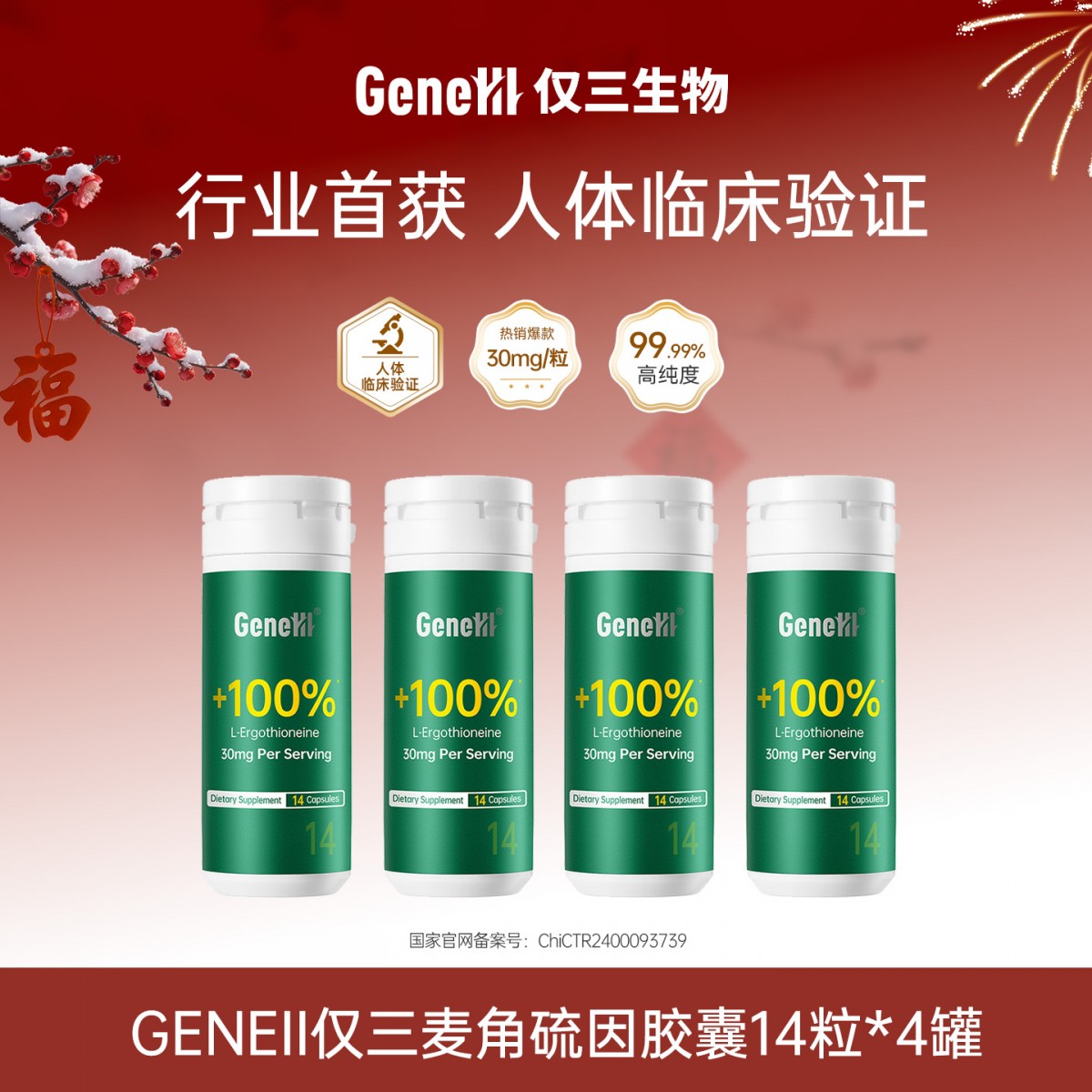 商品名称:【GENEIII仅三生物】30mg麦角硫因胶囊14粒[限时限量秒杀]