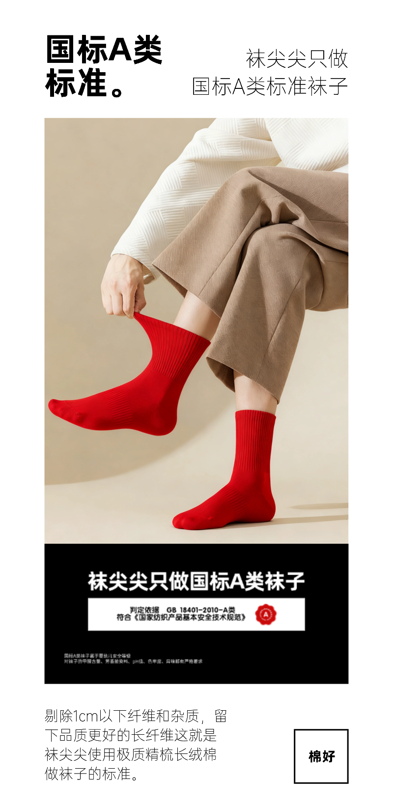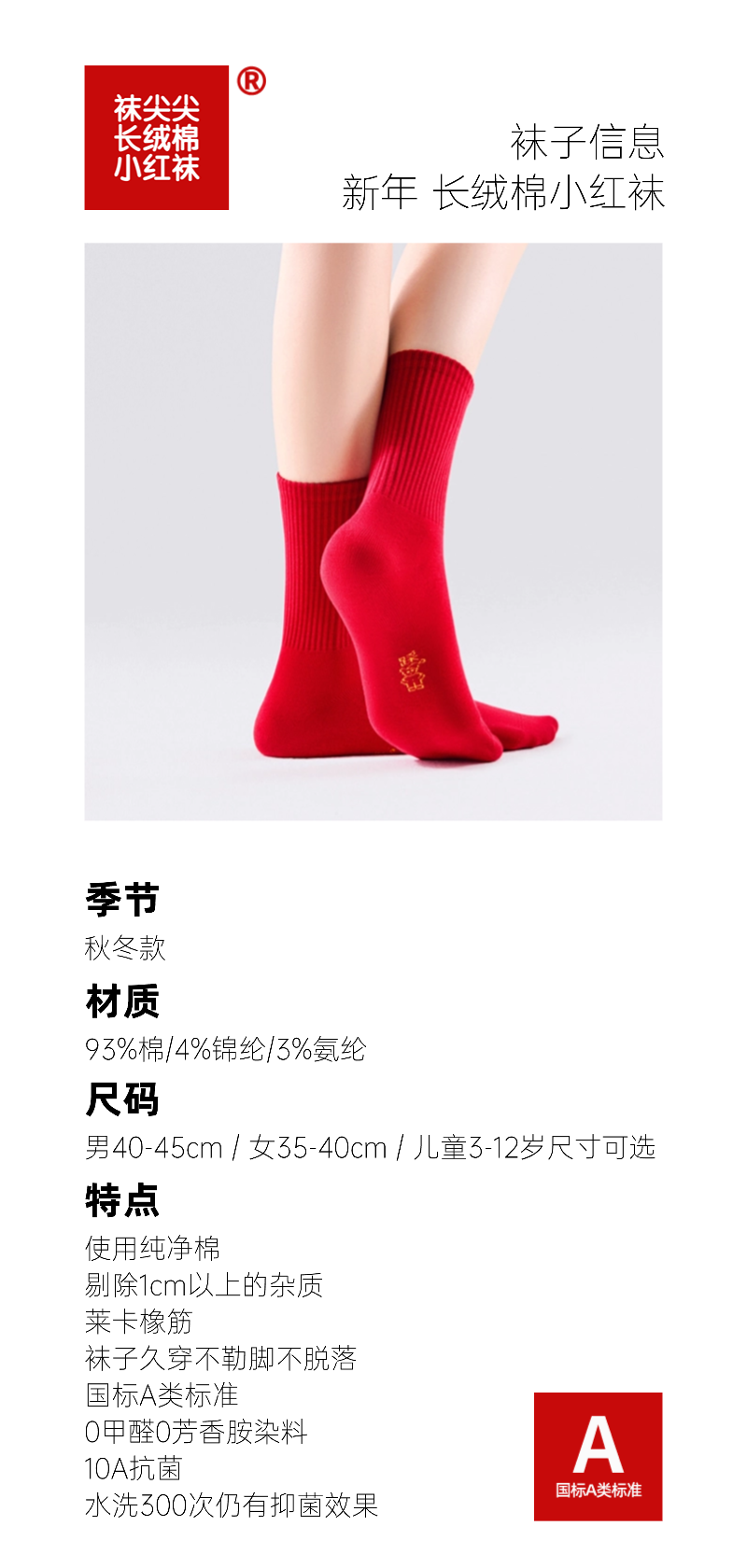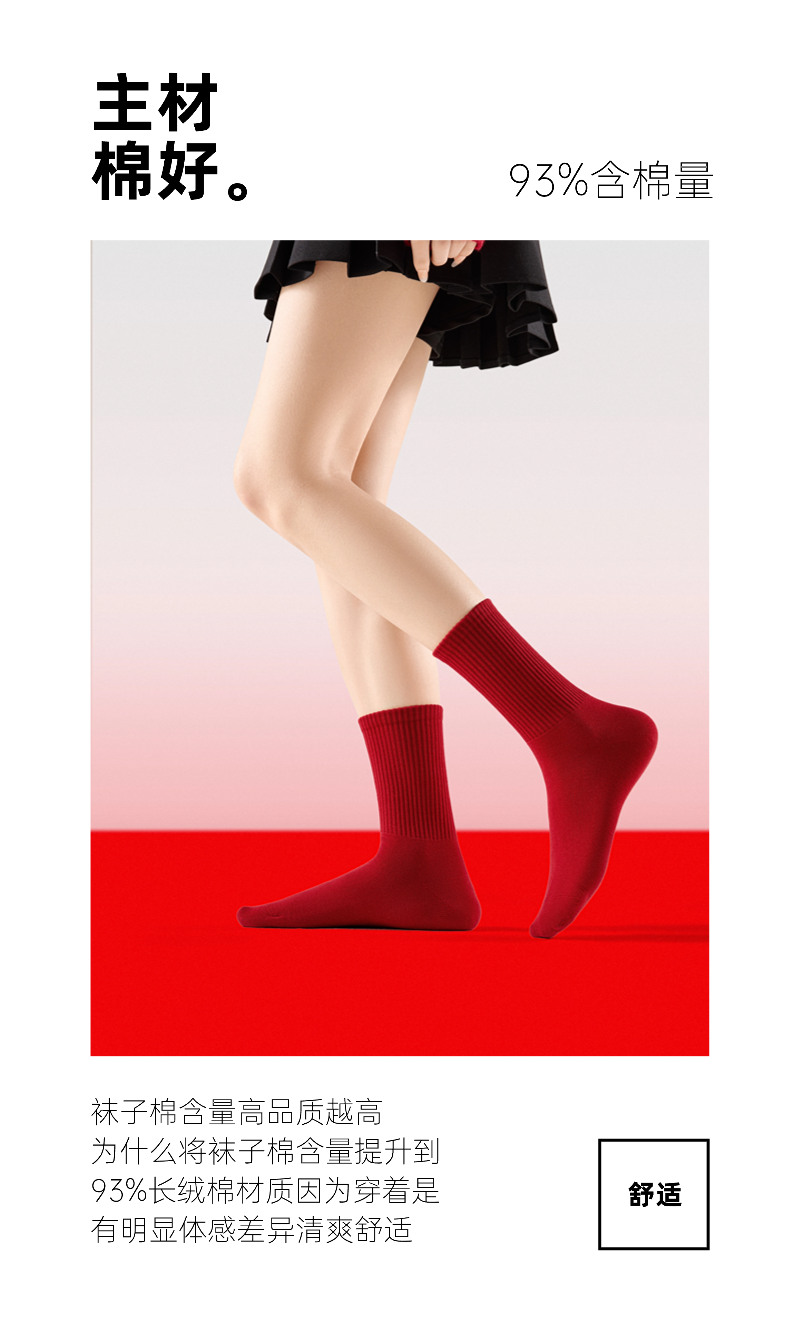 商品名称:【周三闪购】男士款!袜尖尖(新年小红袜)新年限定款!本命年、转运必穿!新的一年红红火火!93%棉➕4%锦纶➕3%氨纶!要棉感能吸汗,要弹性有高弹!穿着超舒适!