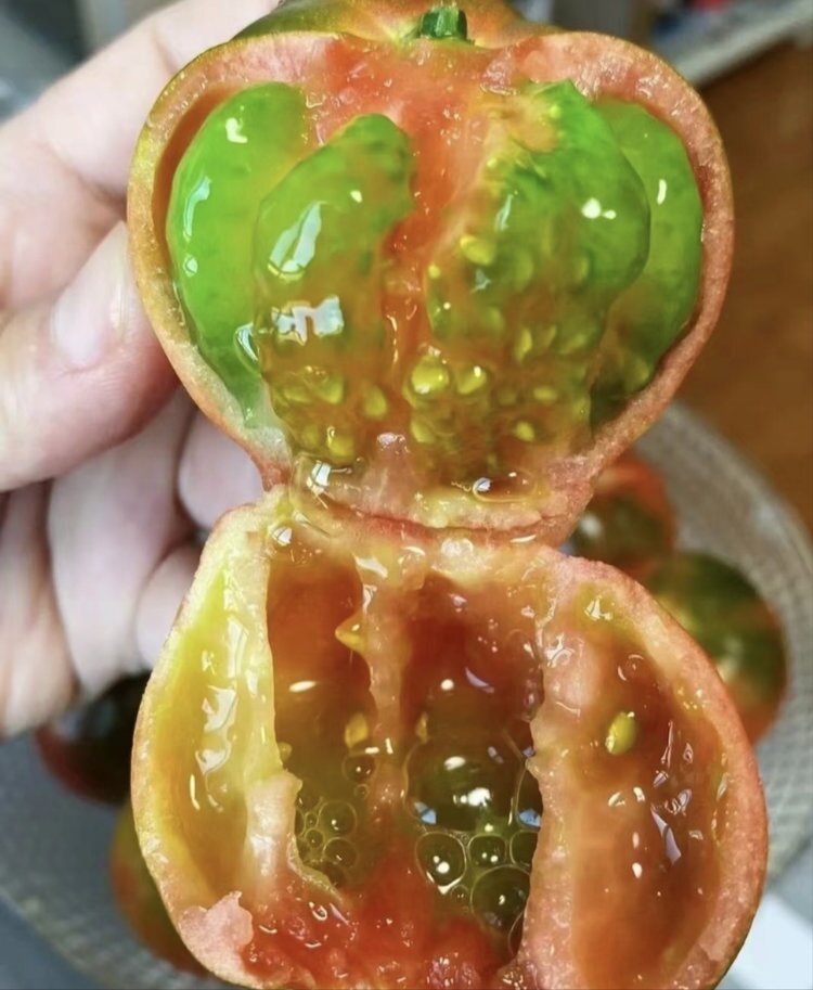 🍅8分以上脆度没有了,几乎纯甜接近千禧的甜度了,多汁嫩滑,皮脆肉糯,番茄味道特浓!!