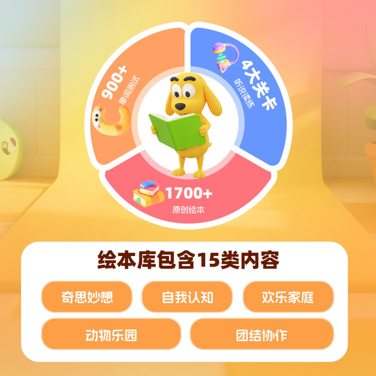 商品名称:适趣AI英语2年卡💥英语启蒙新神器【适趣英语】!! 👏🏻由北大田博士团队🎓专为3-8岁孩子研发的AI英语启蒙工具 📚把单词融入阅读,让孩子在阅读一个个有趣的故事中,建立对英语的兴趣。 ❤️除了绘本、故事、游戏、录制配音这里都有