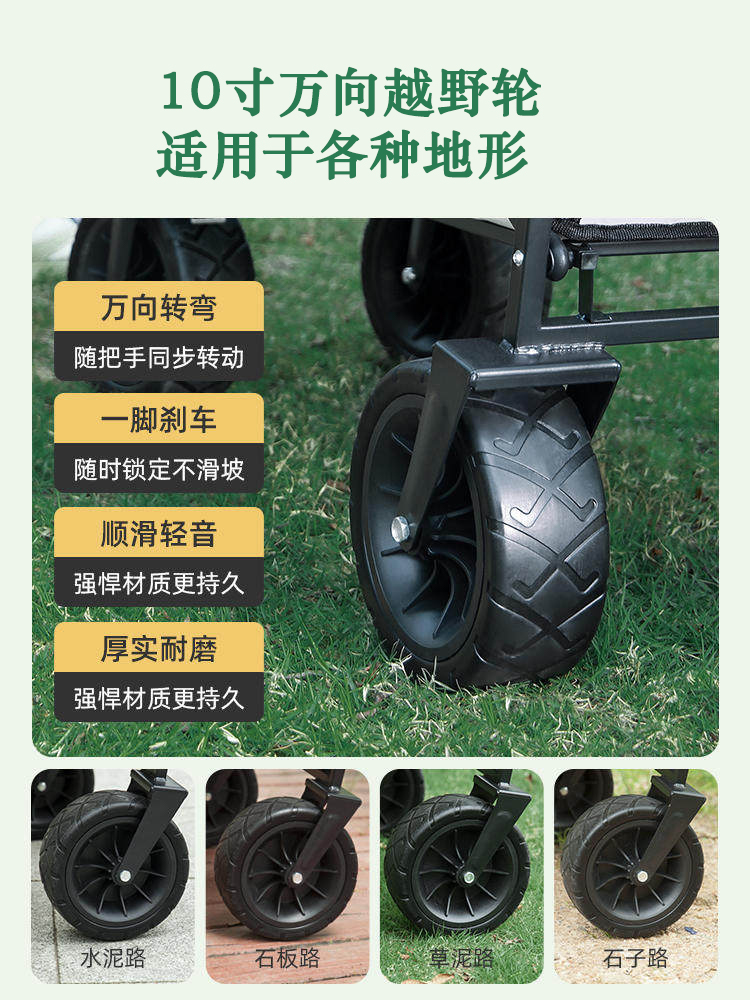 聚拢式超大露营车,约300L升级大容量,高强度框架稳固结构,承重加强;10寸加大万向轮,加厚耐磨材质,上下坡不费劲;