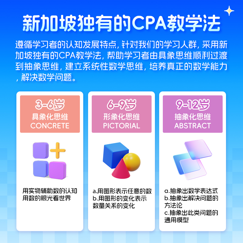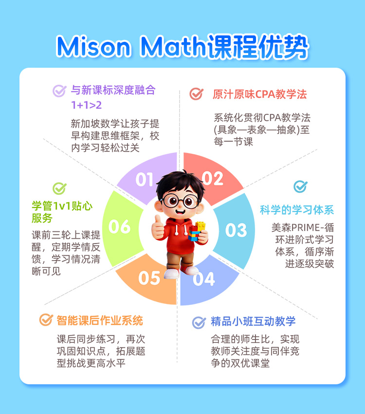 商品名称:美森教育 新加坡数学思维能力训练课 CPA教学法 真人在线培训1节体验课