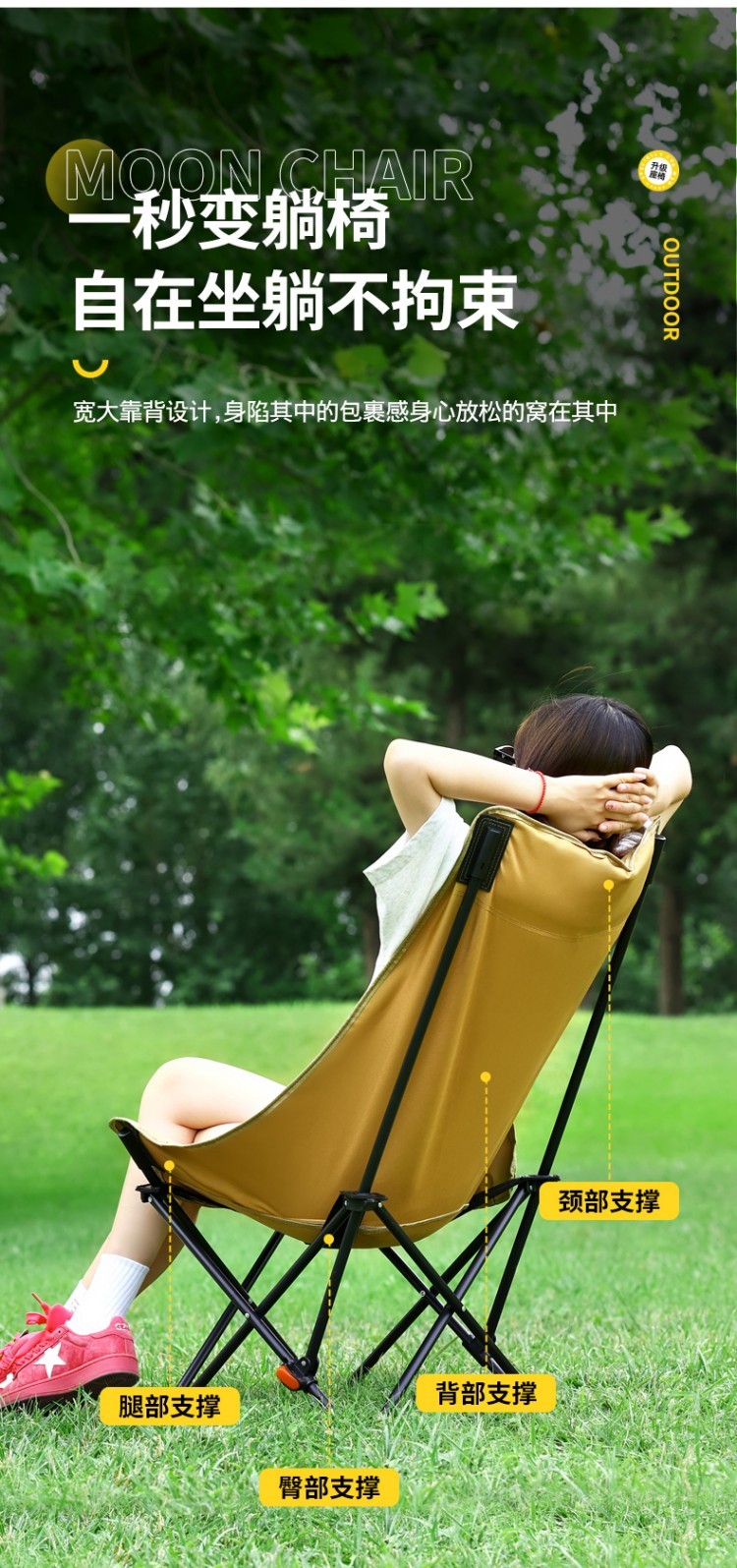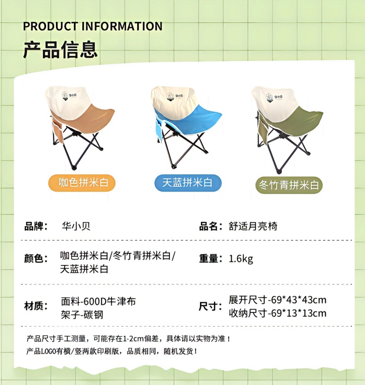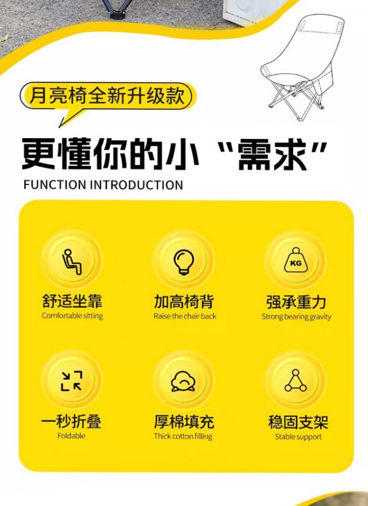 商品名称:【华小贝户外折叠凳/月亮椅】🔺户外室内可折叠🔺可坐、可躺椅🔺收纳、携带皆方便