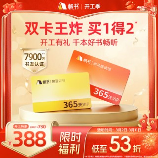帆书(原樊登读书)开工季买1得2,立享双会员 买【樊登讲书】送【非凡精读】 买【樊登讲书】送【李蕾讲经典】 买【非凡精读】送【李蕾讲经典】 官方售价:388元