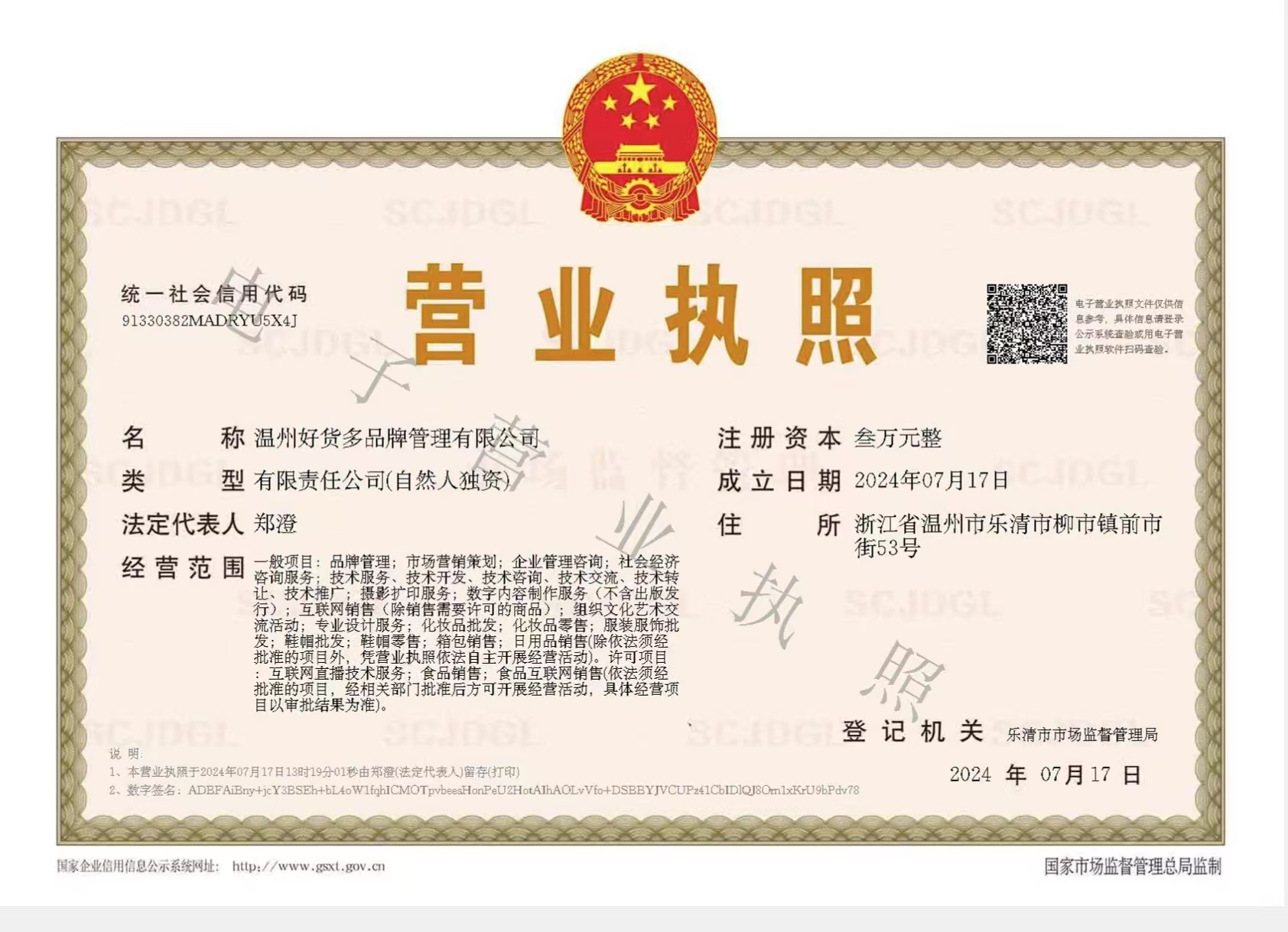 - 根据国家工商总局《网络交易管理办法》要求对网店营业执照信息公示如下: