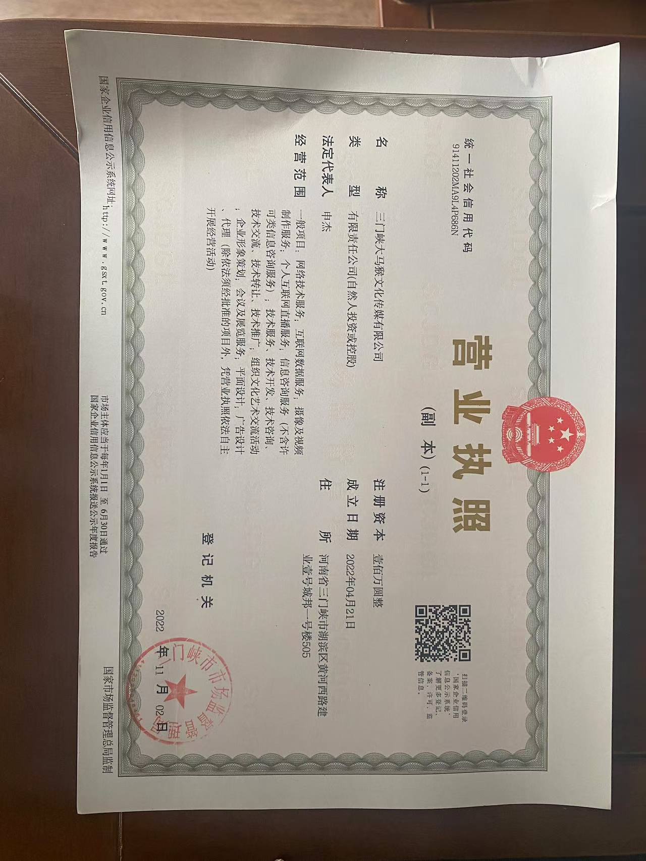 - 根据国家工商总局《网络交易管理办法》要求对网店营业执照信息公示如下: