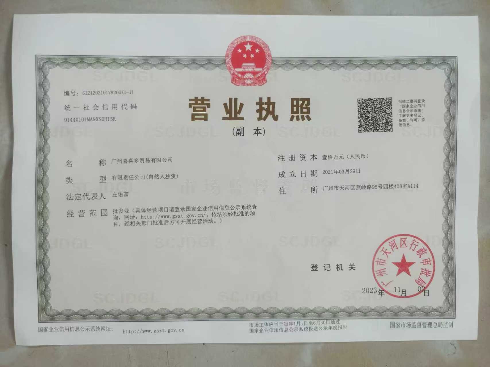 营业执照注册号:
