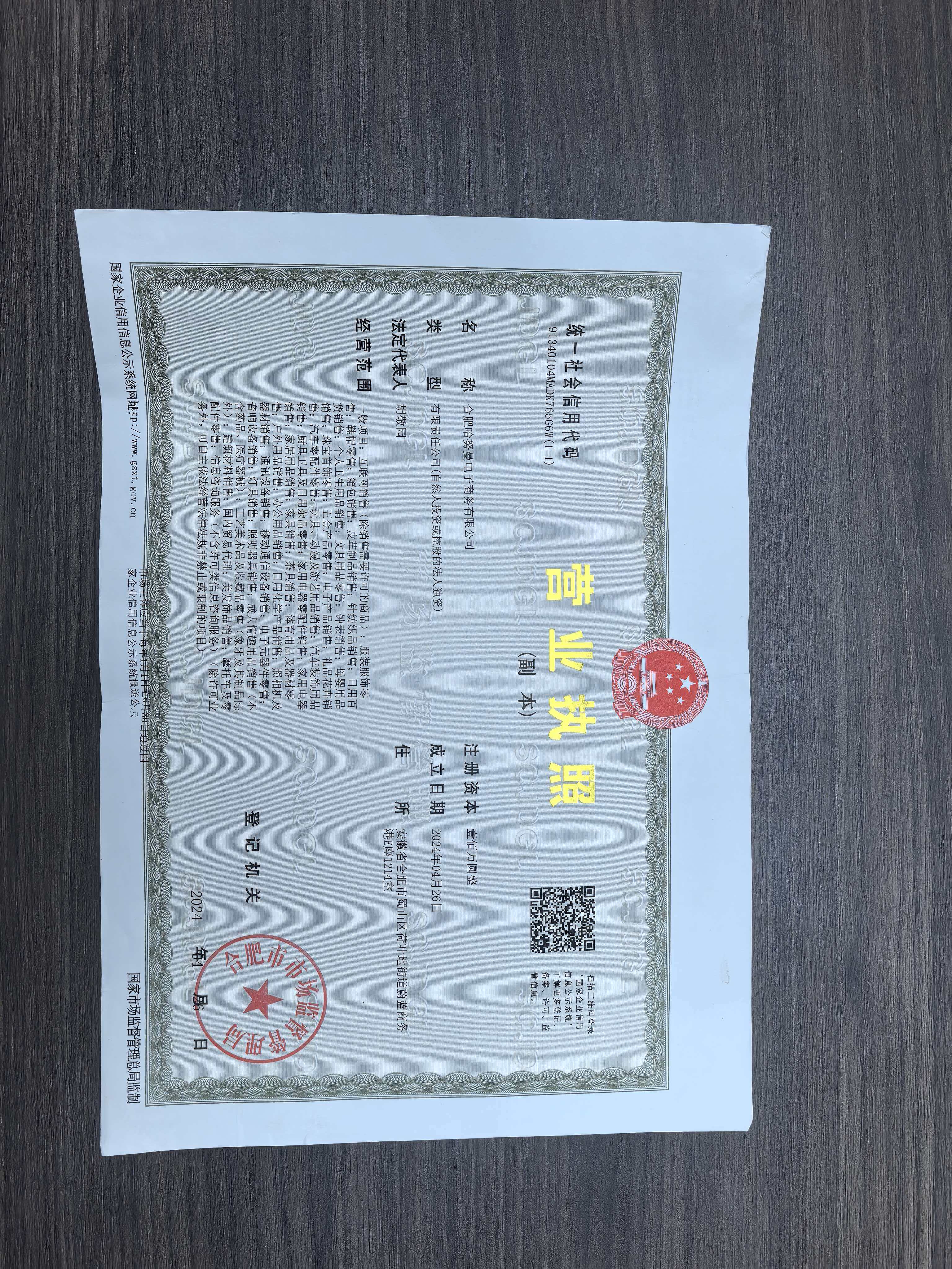 - 根据国家工商总局《网络交易管理办法》要求对网店营业执照信息公示如下:
