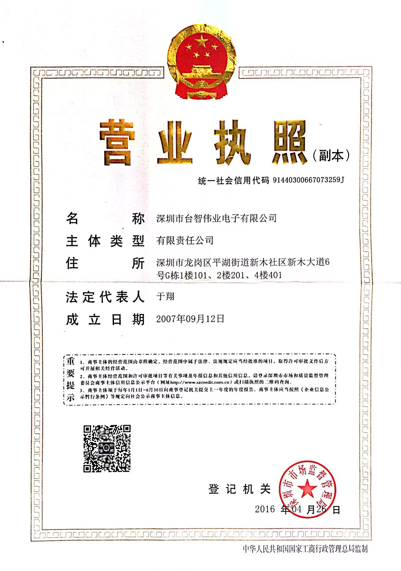 营业执照注册号: